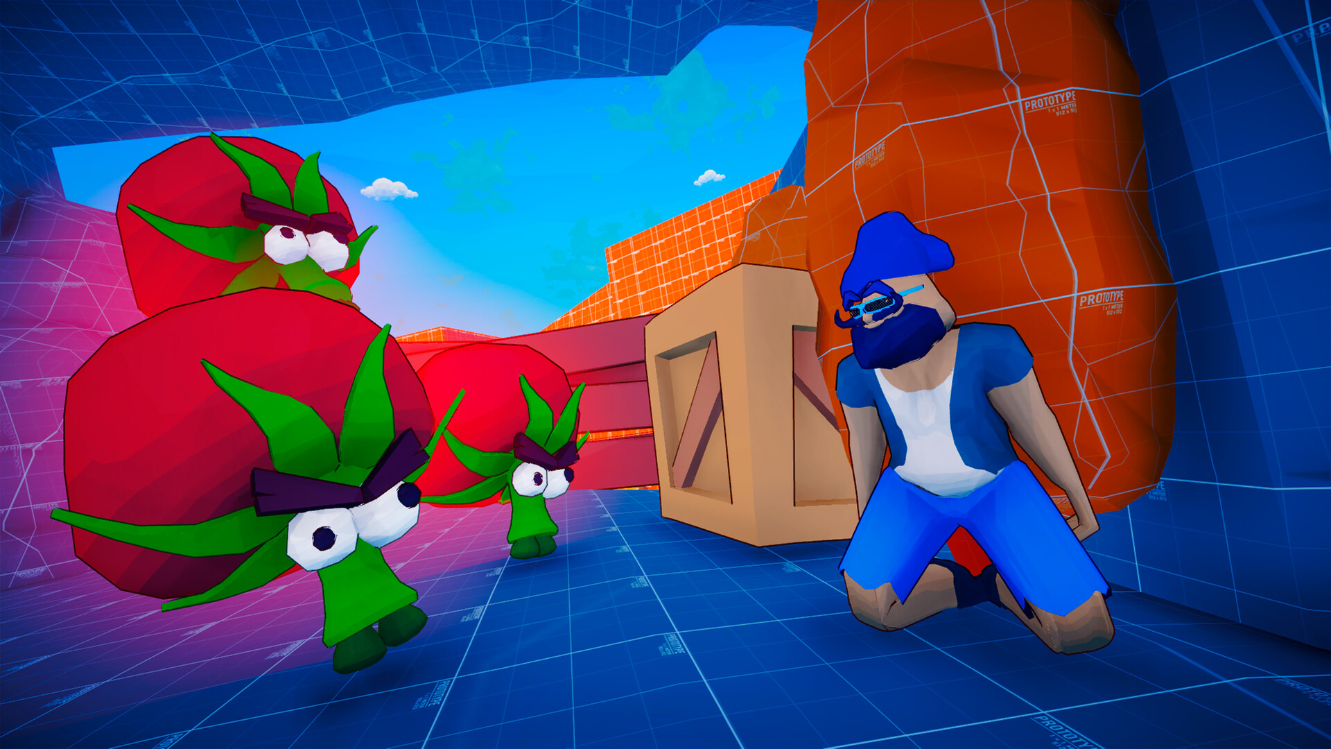 You start with nothing. Fight through rounds of angry food, earn points, open up the map, and build your loadout as things get more chaotic.
