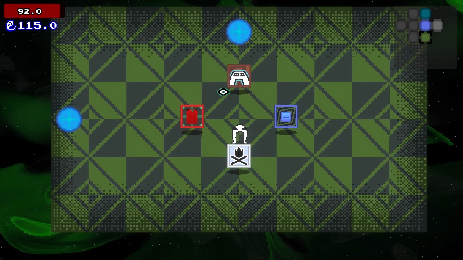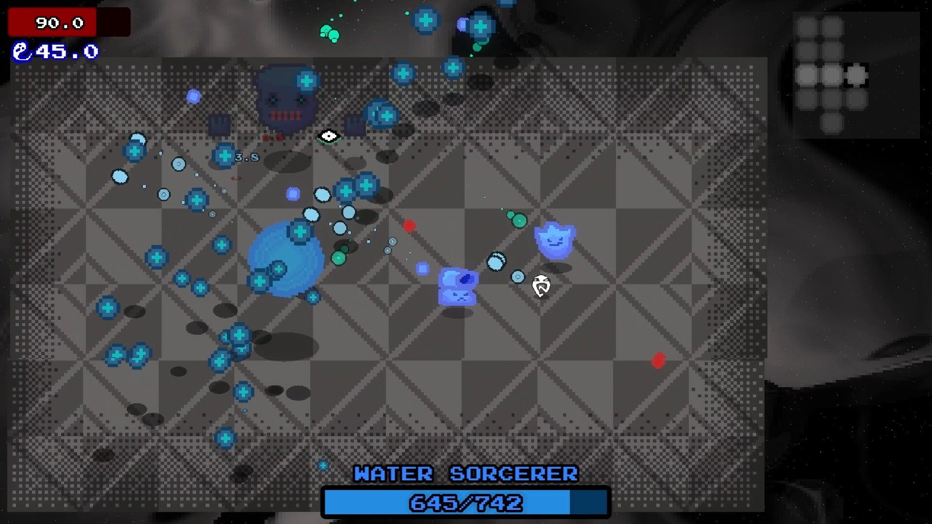 In this game you play as the little fellow we know as CRO, navigate through the void while collecting cool upgrades, synergies and fighting unique bosses along the way. Every room you enter will contain a different boss each with their own bullet hell patterns.