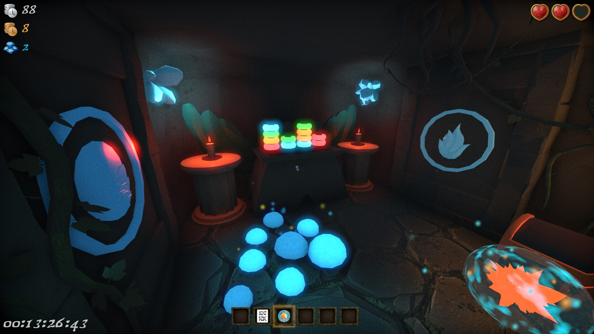 Find and collect all gold and diamonds hidden throughout the dungeons to unlock the better ending.