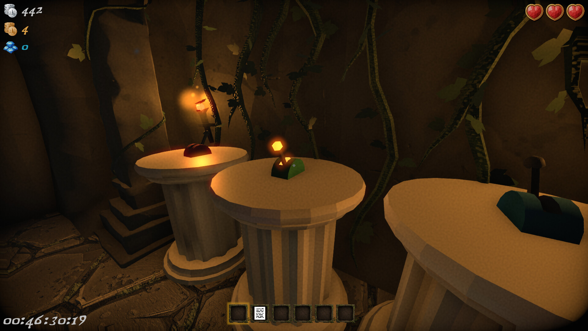 Find and collect all gold and diamonds hidden throughout the dungeons to unlock the better ending.