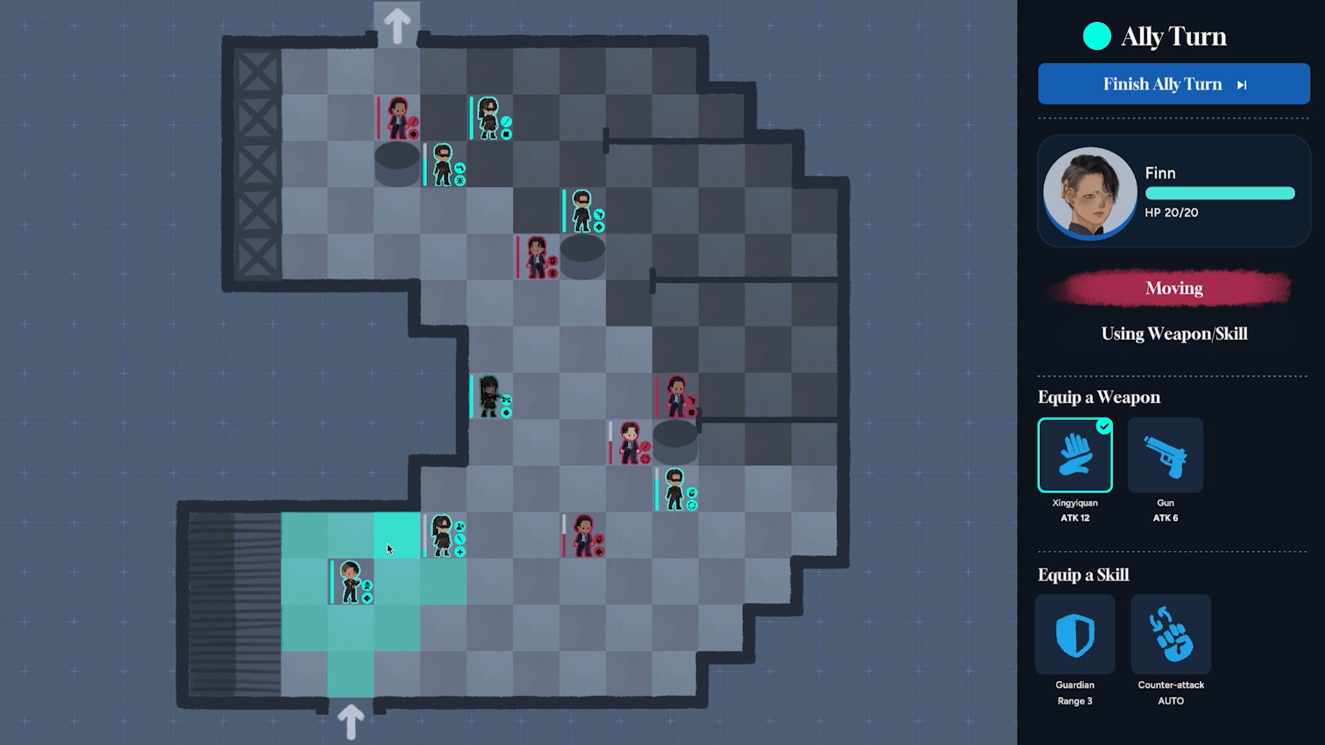 This game includes a 2D turn-based trategy game that’s inspired by chess and classic SRPGs. You will control different ally units (or ‘chess pieces’) to defeat your enemies. Different chess pieces have different movement patterns, weapons and skills that enrich the gameplay.