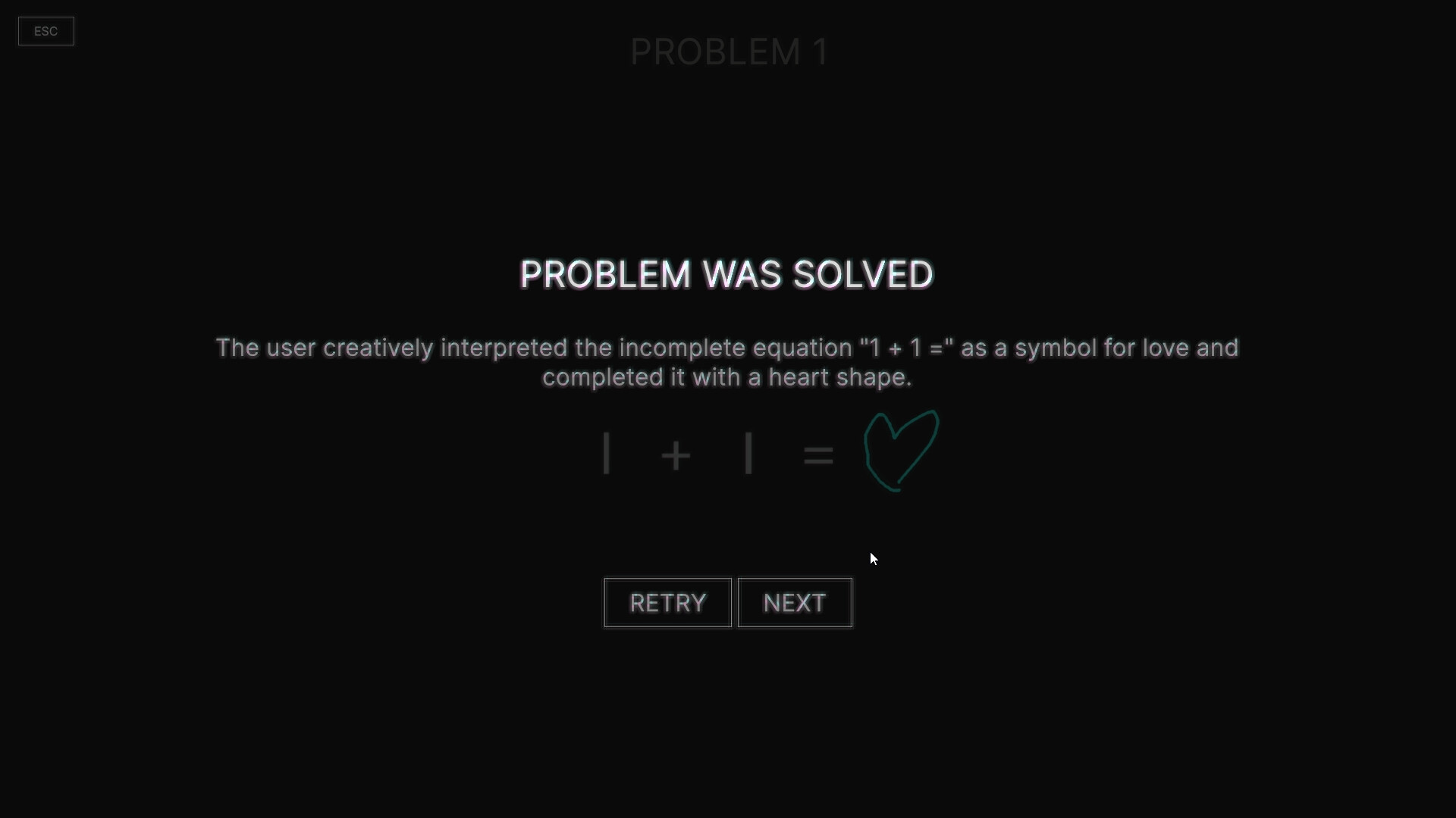 Draw lines. Break rules. Let an AI judge your creativity. UNDEFINED: ILS is a short puzzle adventure. Draw freely on 100 visual puzzles. The AI replies “SOLVED” or “NOT SOLVED” with sharp, interesting explanations. Your style shapes 4 endings in ~1 hour. No hints, no timers. Pure creative freedom.