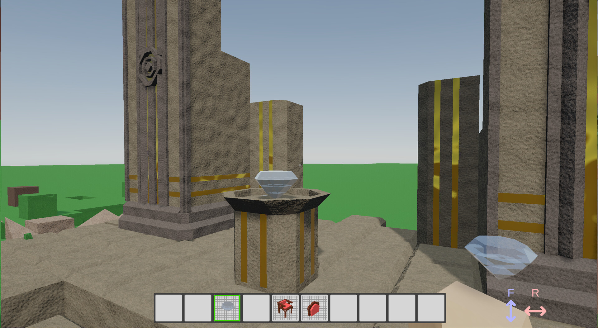 We plan to introduce a full survival mode, including resource gathering, progression systems, and new gameplay mechanics that complement the building system. Procedural world generation is also planned, allowing players to explore and build within more dynamic and varied environments.