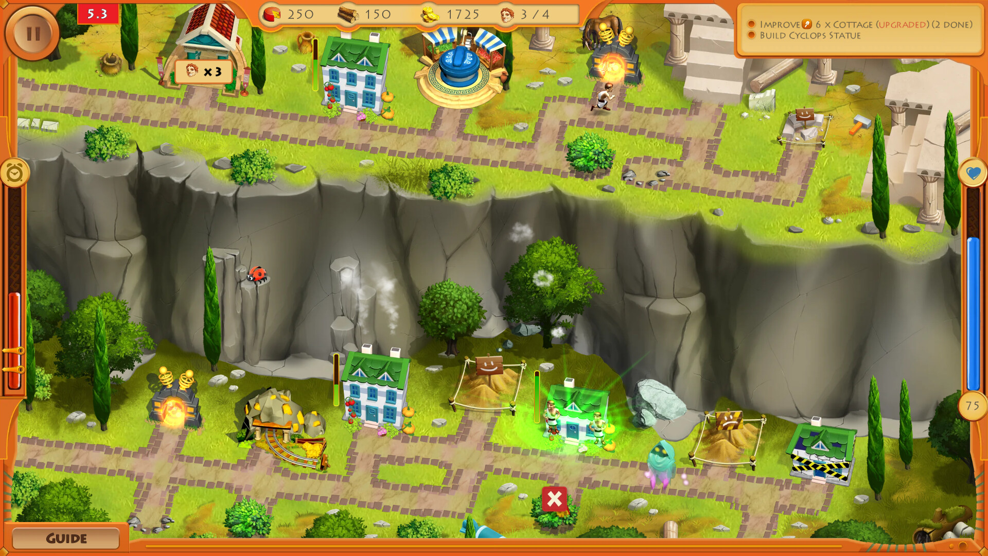 Join Hercules to save Syracuse from erupting volcano fire in time management adventure! Gather resources, build and upgrade structures, complete strategic tasks, and banish mischievous ghosts to restore balance to the world