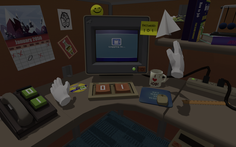The award winning tongue-in-cheek virtual reality experience that put the ‘fun’ in “funemployment” In a world where robots have replaced all human jobs, step into the "Job Simulator" to learn what it was like 'to job'.