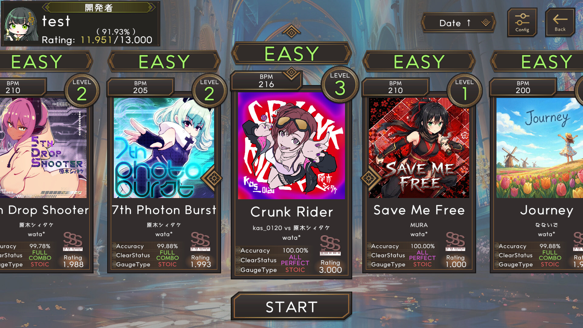 The charts consist only of notes and long notes, allowing you to easily enjoy the feel of playing piano right on your keyboard.