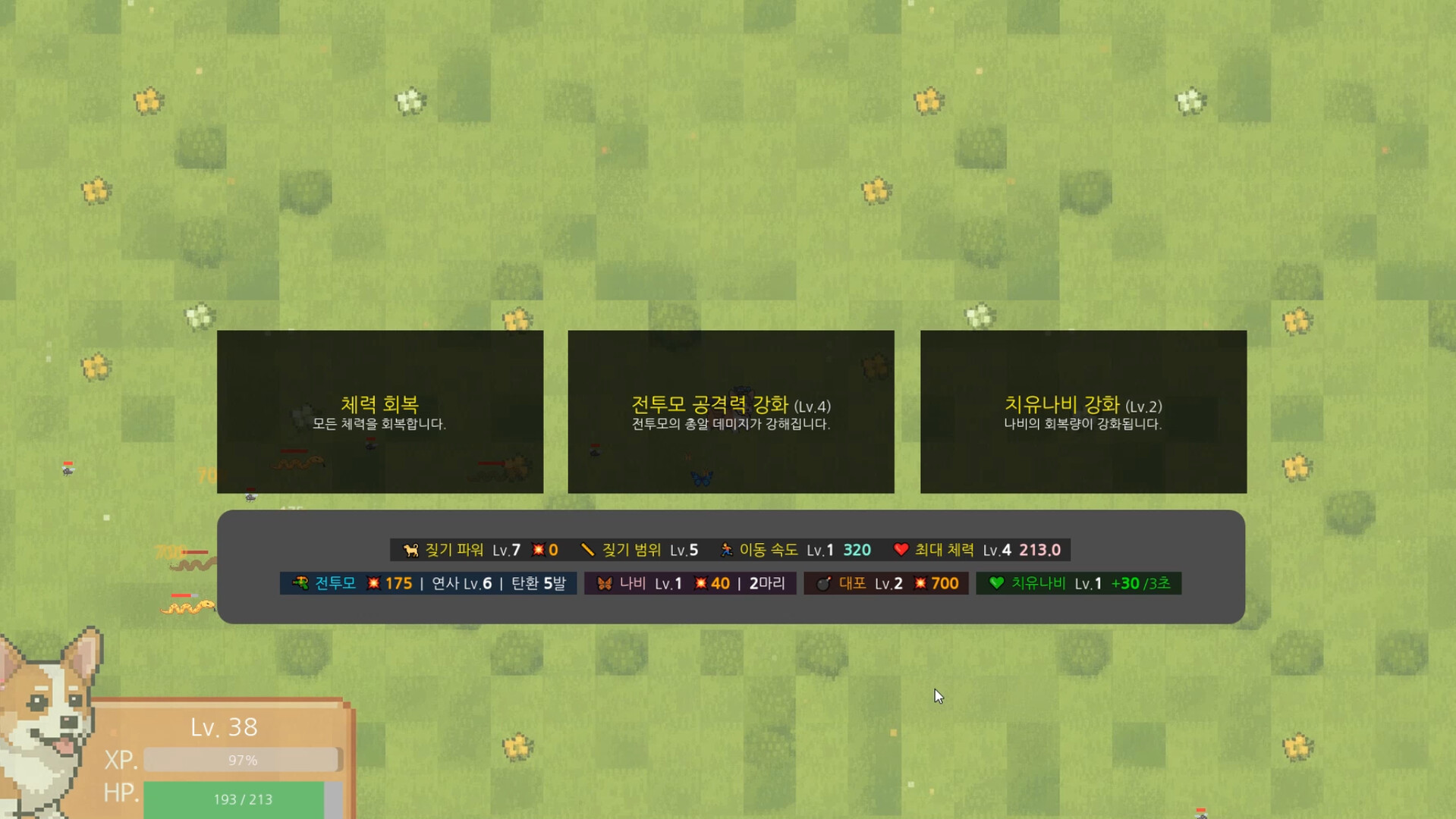 귀여운 코기와 친구들! 하지만 생존은 결코 귀엽지 않습니다. 빠르게 몰려오는 곤충과 야생 동물들의 습격 속에서 끝까지 살아남으세요! 간단한 조작과 깊이 있는 성장 선택이 결합된 로그라이트 생존 게임입니다.