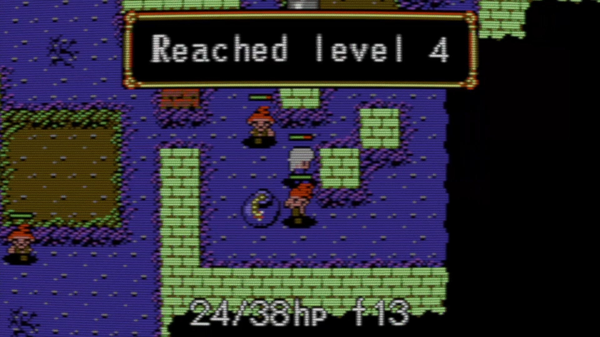 A procedurally generated, interconnected dungeon with stairs, warps, sections and cracks where you might fall through the floor. Stairs might break, thus making backtracking more challenging.