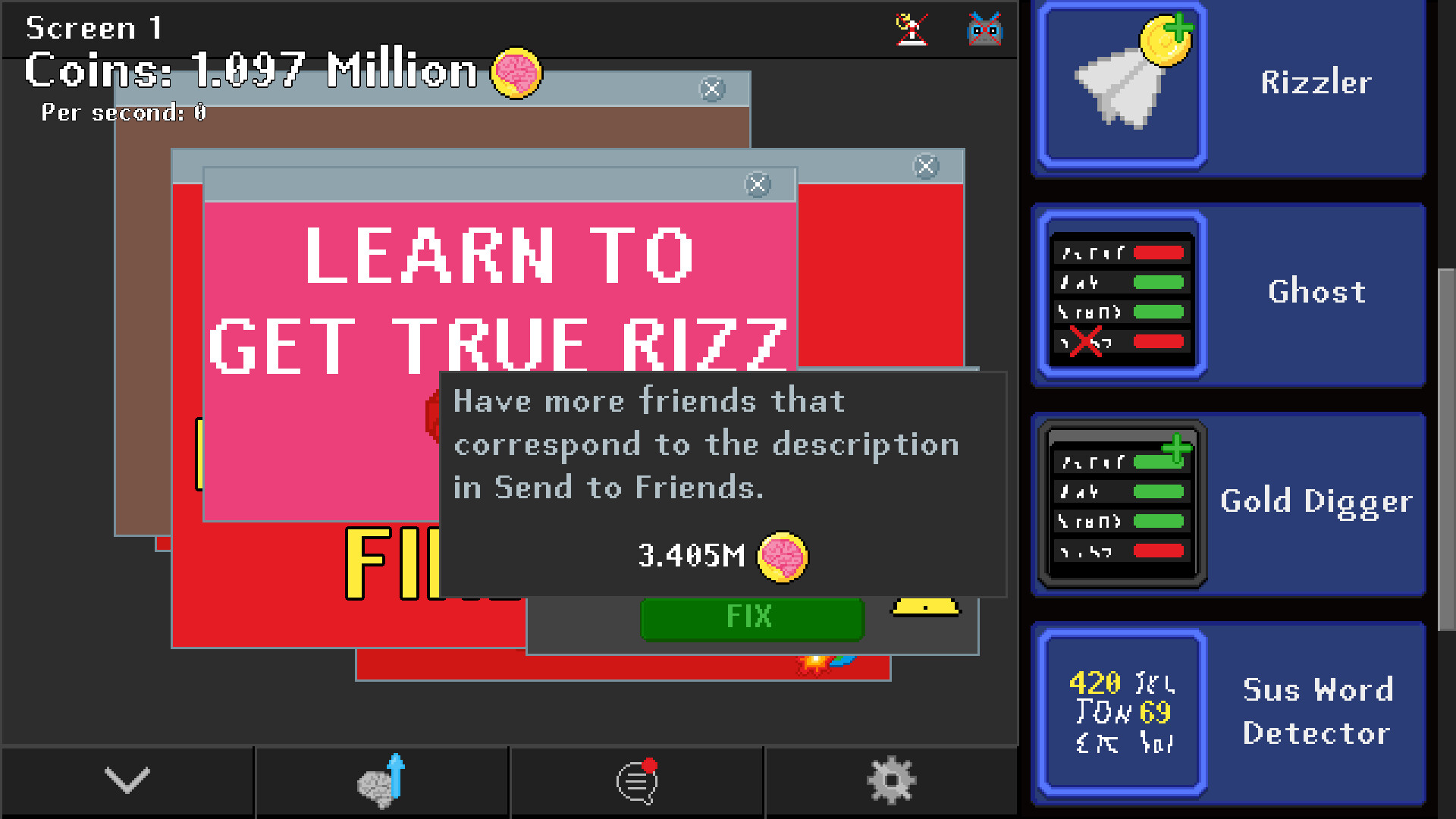 Brainrotting is an incremental game about doomscrolling or solving minigames, getting upgrades and eventually automating your dopamine generation.