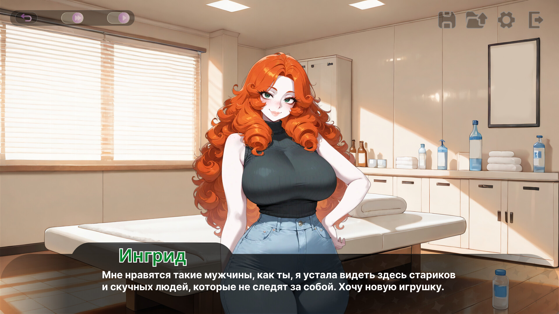 Она самая опытная массажистка в клинике. В свои 28 лет Ингрид — настоящий эксперт в использовании своих физических достоинств, чтобы доставить удовольствие тому, кого выберет. Женщина немногословная, но страстная в интимные моменты, готовая отдать всё и остаться в памяти каждого, кто её узнает.
