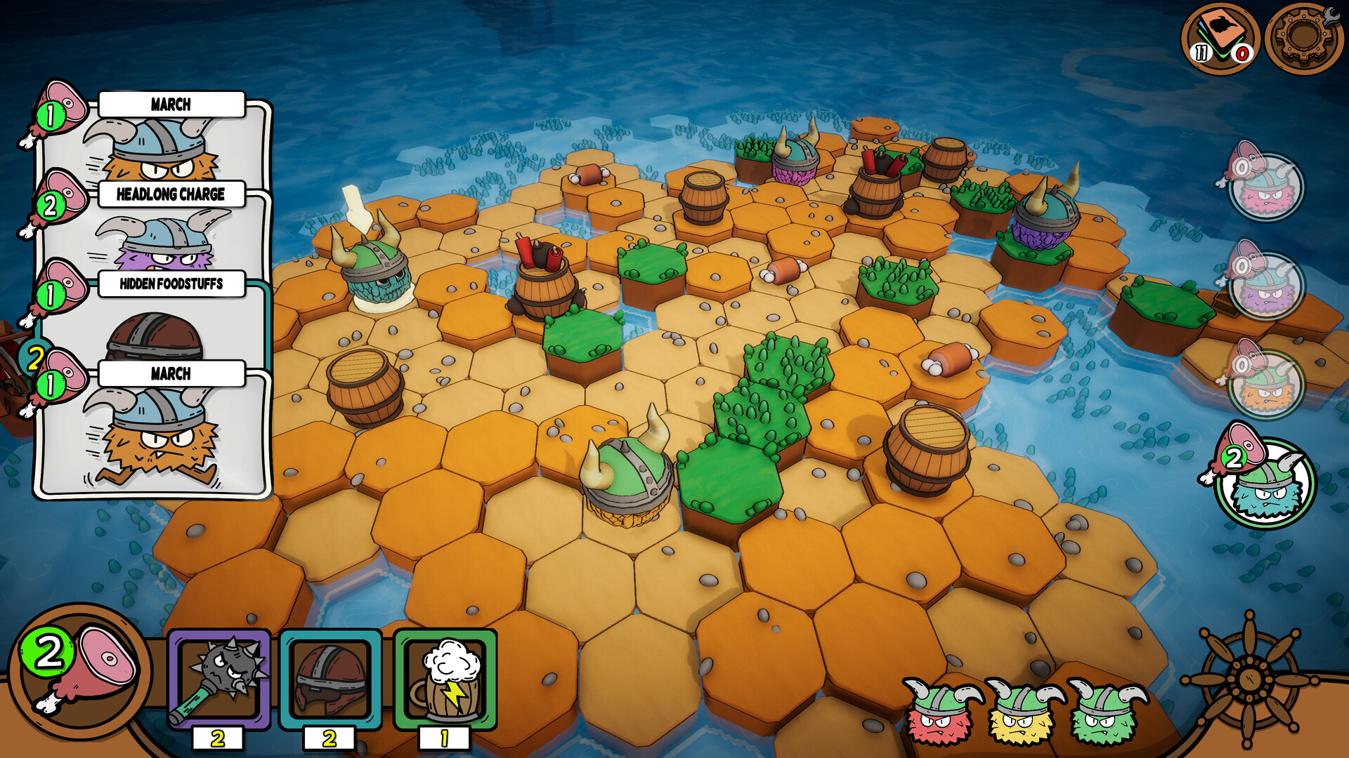 You keep an inventory to hold all the items you find until your run is over. You can assign which Viking uses each item in a battle or on the battlefield.