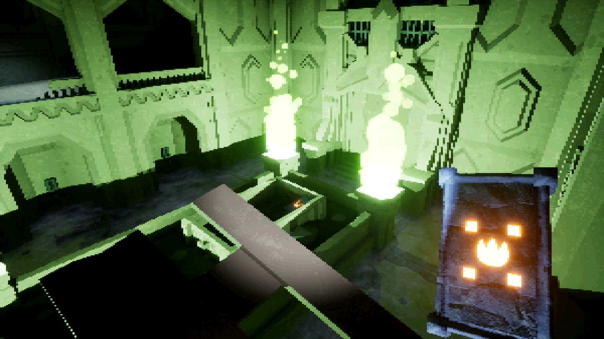 Search the environment for information, decipher the hidden codes, and apply your Rune Slates to access the locks.