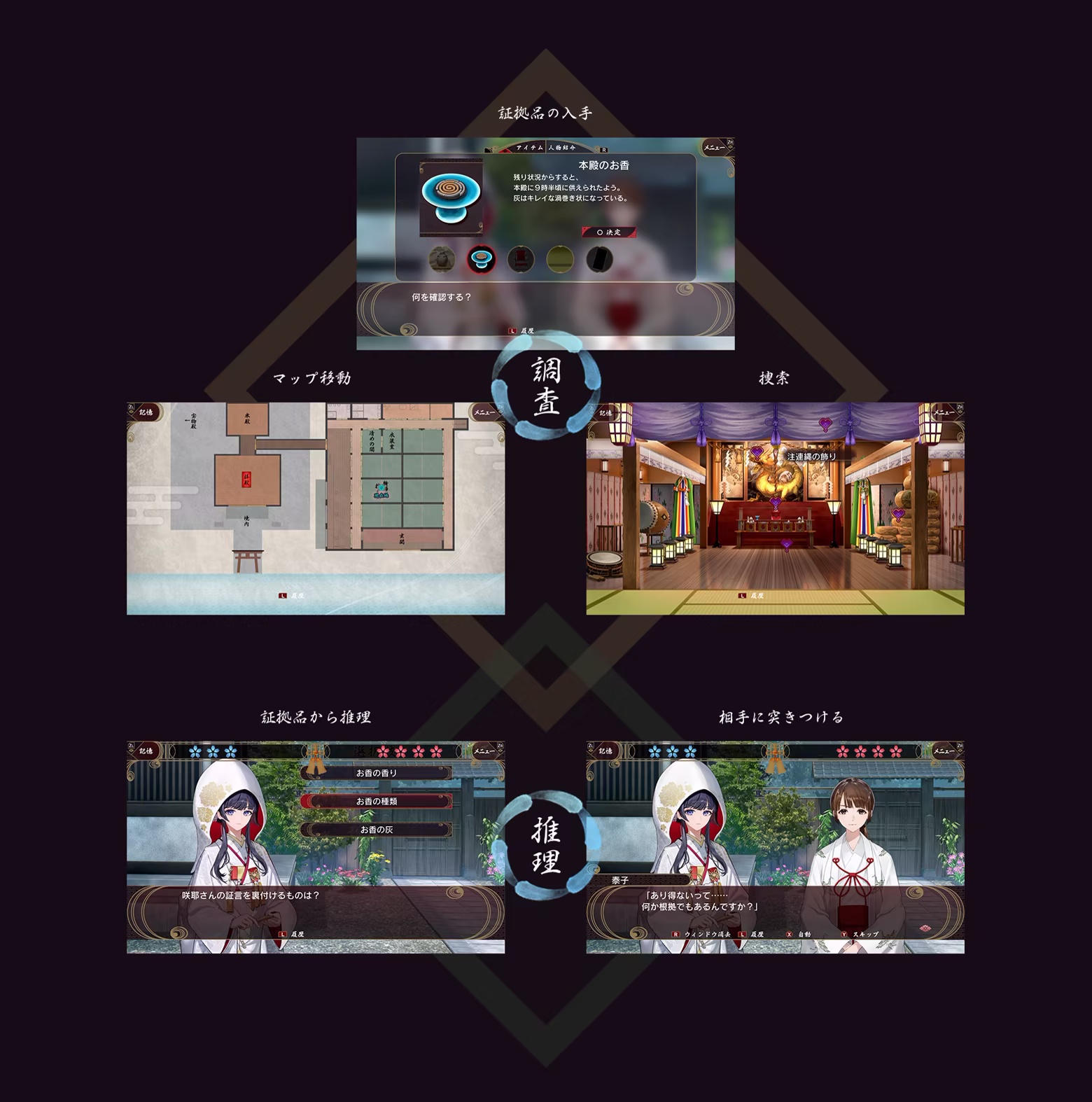 調査によって証拠を入手し、それを容疑者に突きつけるなどして真相に迫っていきます。