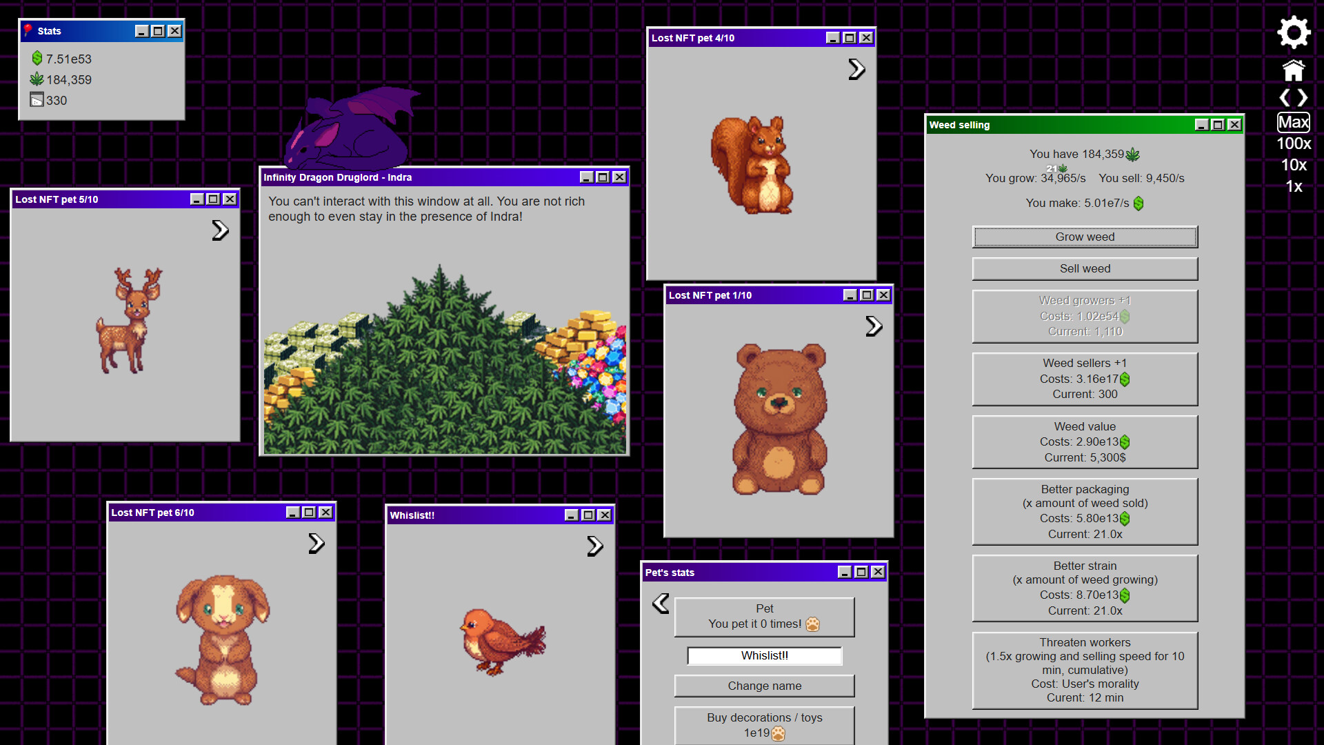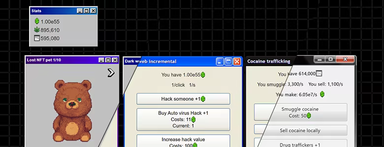Dark web incremental is an incremental idle game where you earn money by doing criminal activities like selling drugs and hacking. Upgrade everything, and find all the pets and secrets around the map while unlocking a myriad of achievements!