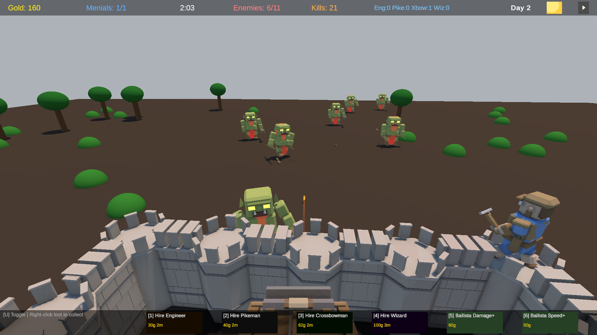 Build and Fortify: Construct walls during the night phase with time slowed to a crawl. Recruit your defenses, use your ballista, and spend hard-won gold on upgrades that could mean the difference between survival and ruin.