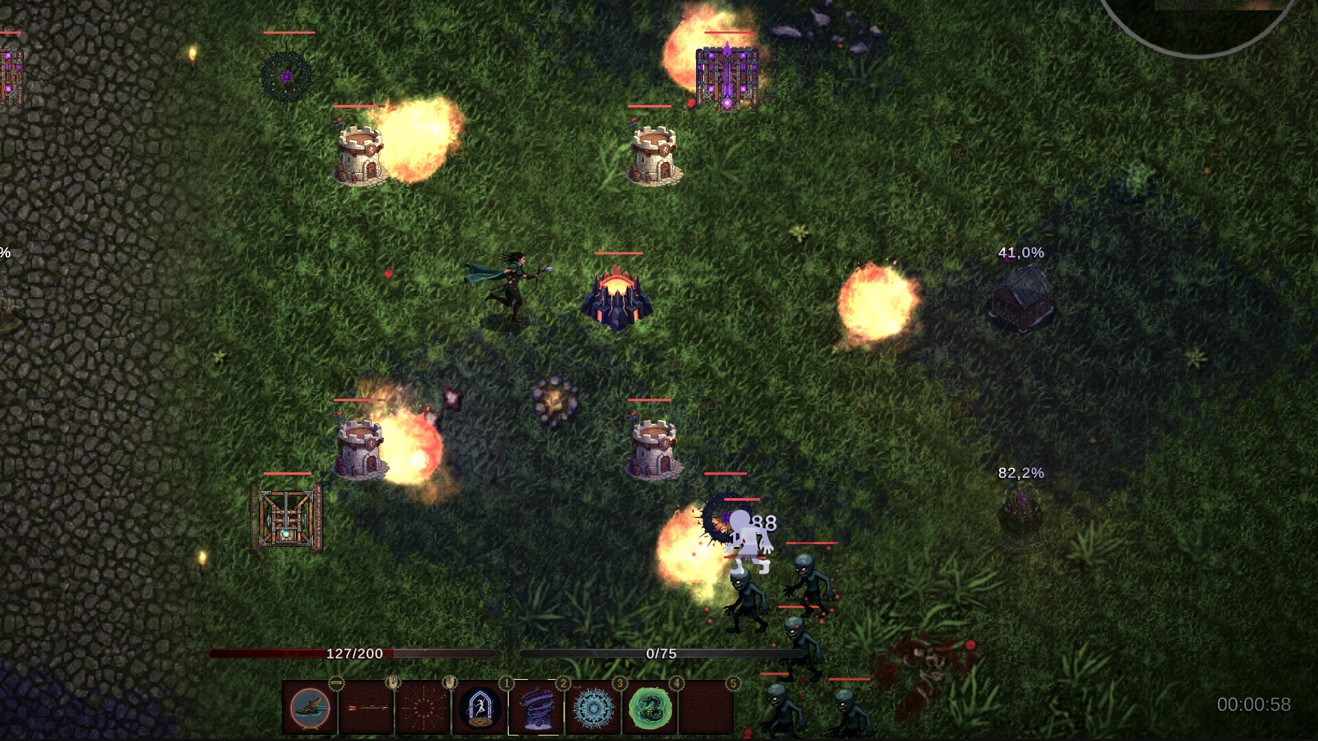 With a Skilltree containing 100 nodes the game can feel very different depending on the chosen skills.