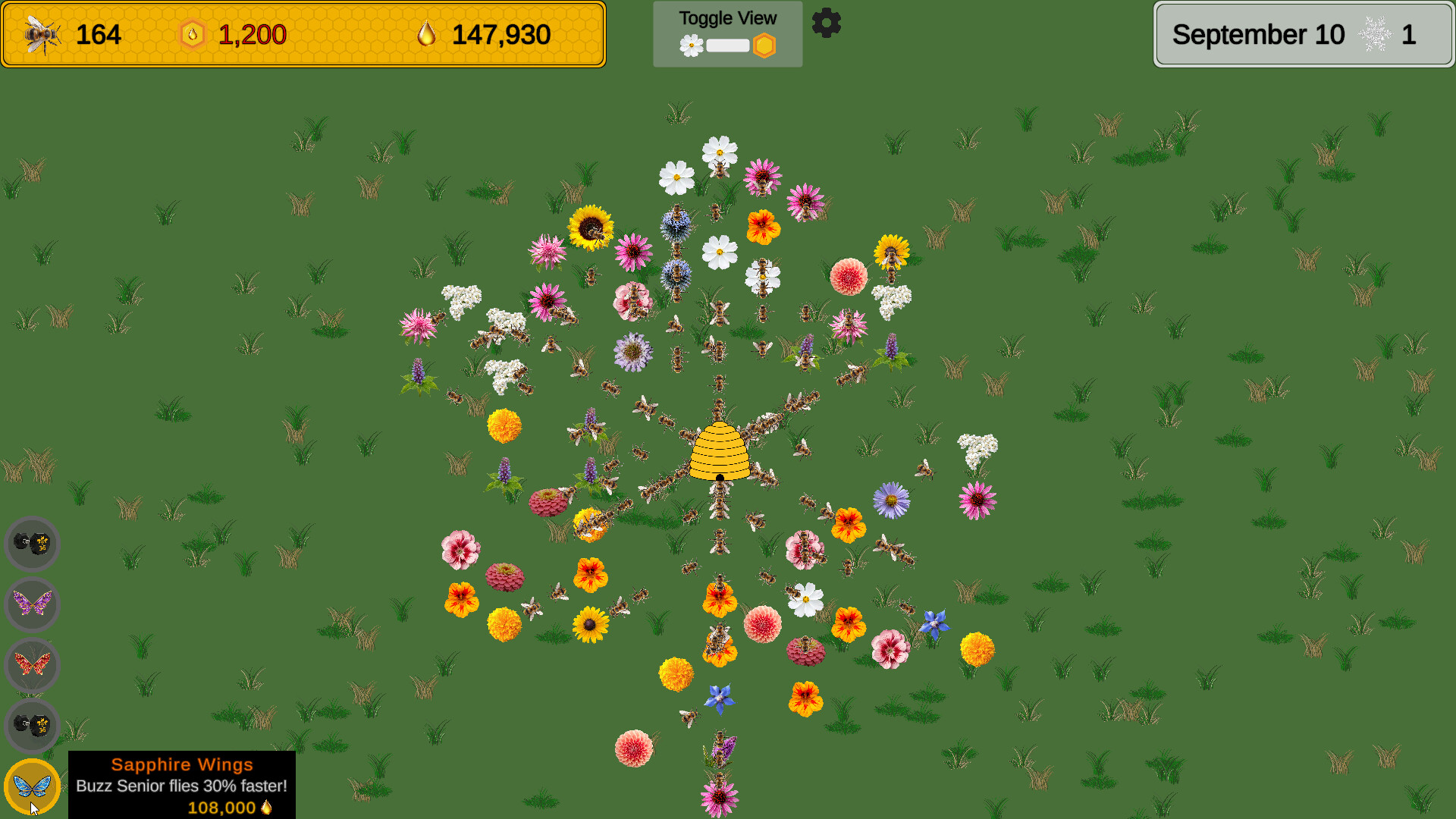 A cozy, incremental swarm builder where you collect honey from flowers, build honeycomb, and hatch more bees. Will your swarm survive the winter? Will your Queen be ready to ascend?