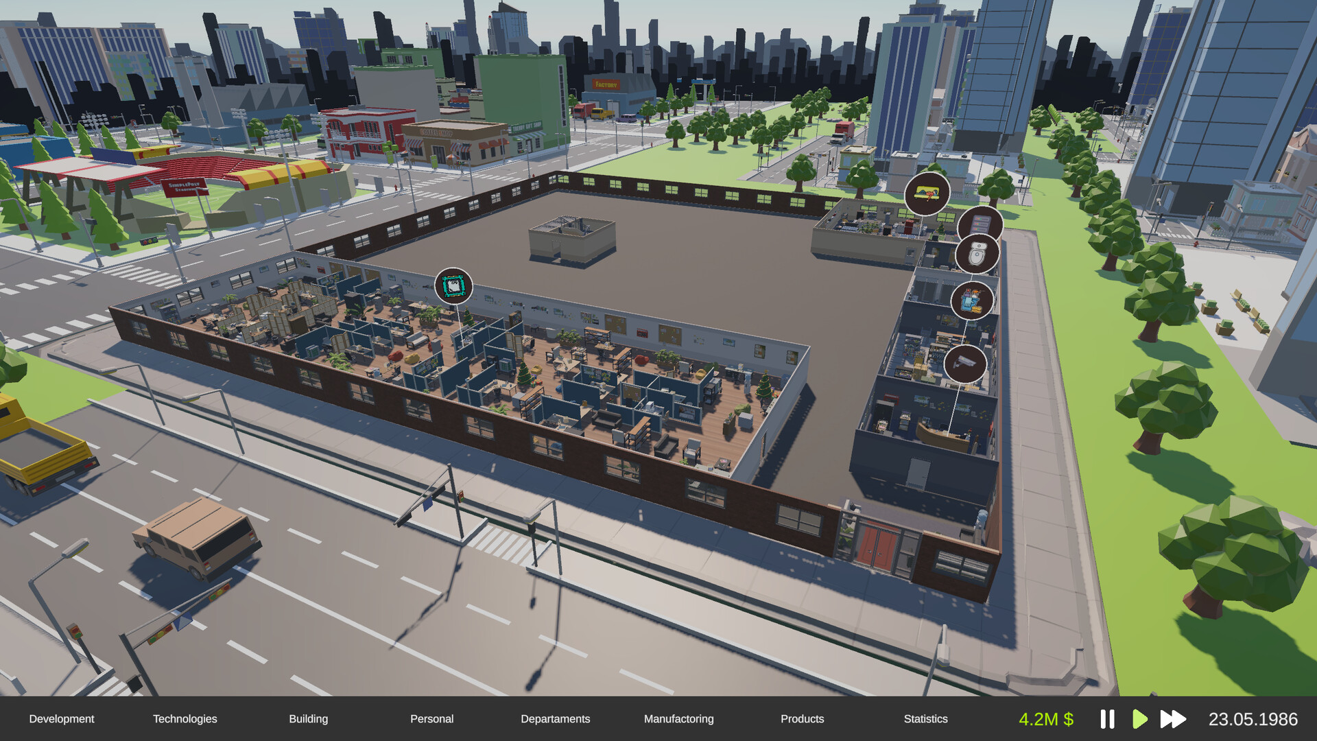 • Company Management: Build and customize your offices and facilities.