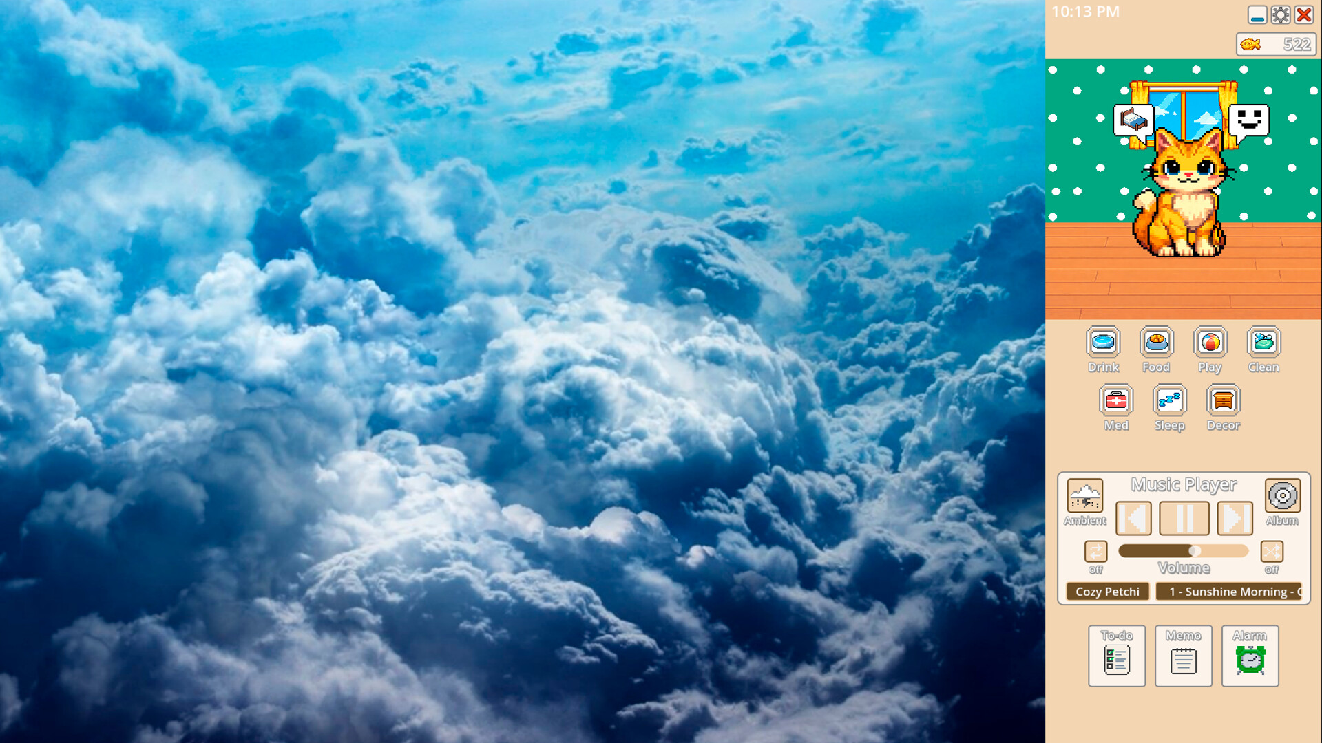 Cozy Petchi Cats is a cozy virtual pet game where you take care of your own kitten while relaxing and letting time pass.