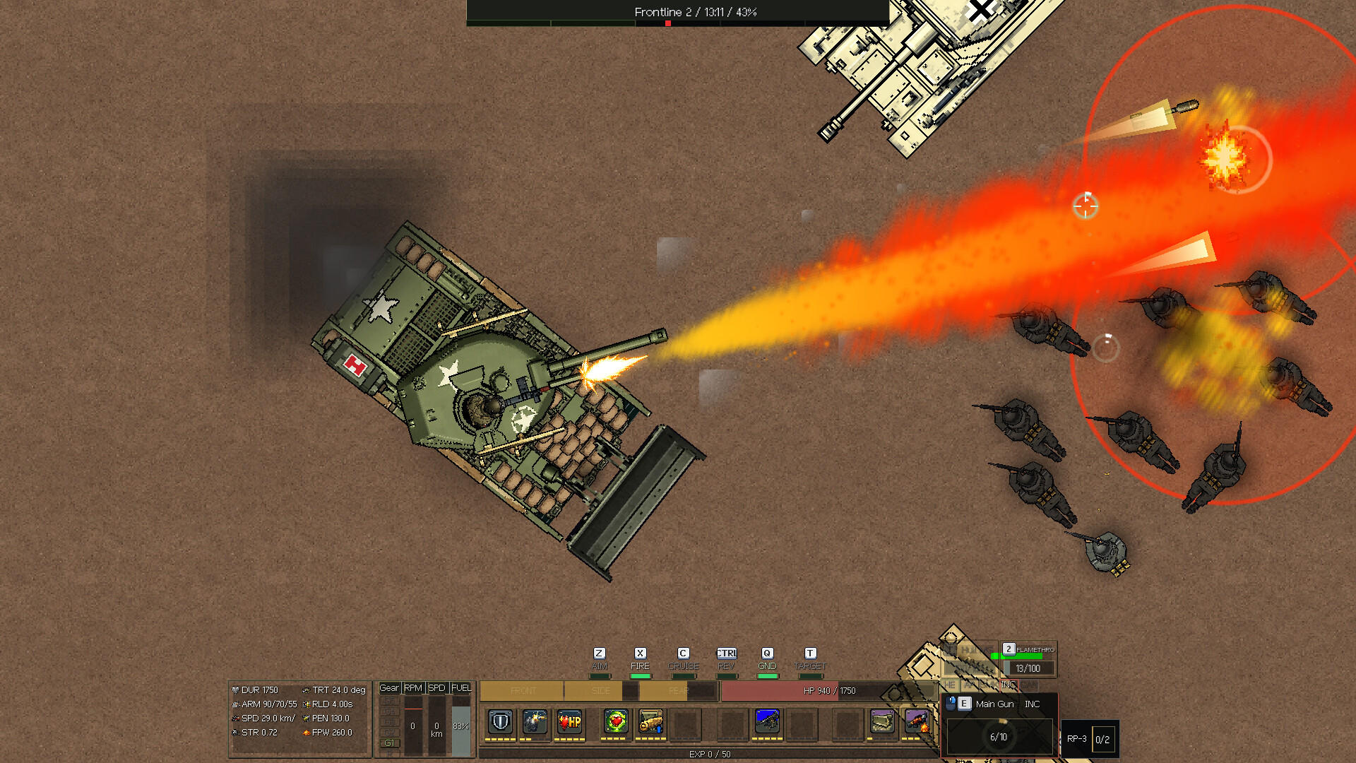 Fight through five frontline sectors in a single run. Adapt to pressure, manage positioning, and keep your tank alive long enough to turn a shaky start into a fully online war machine.