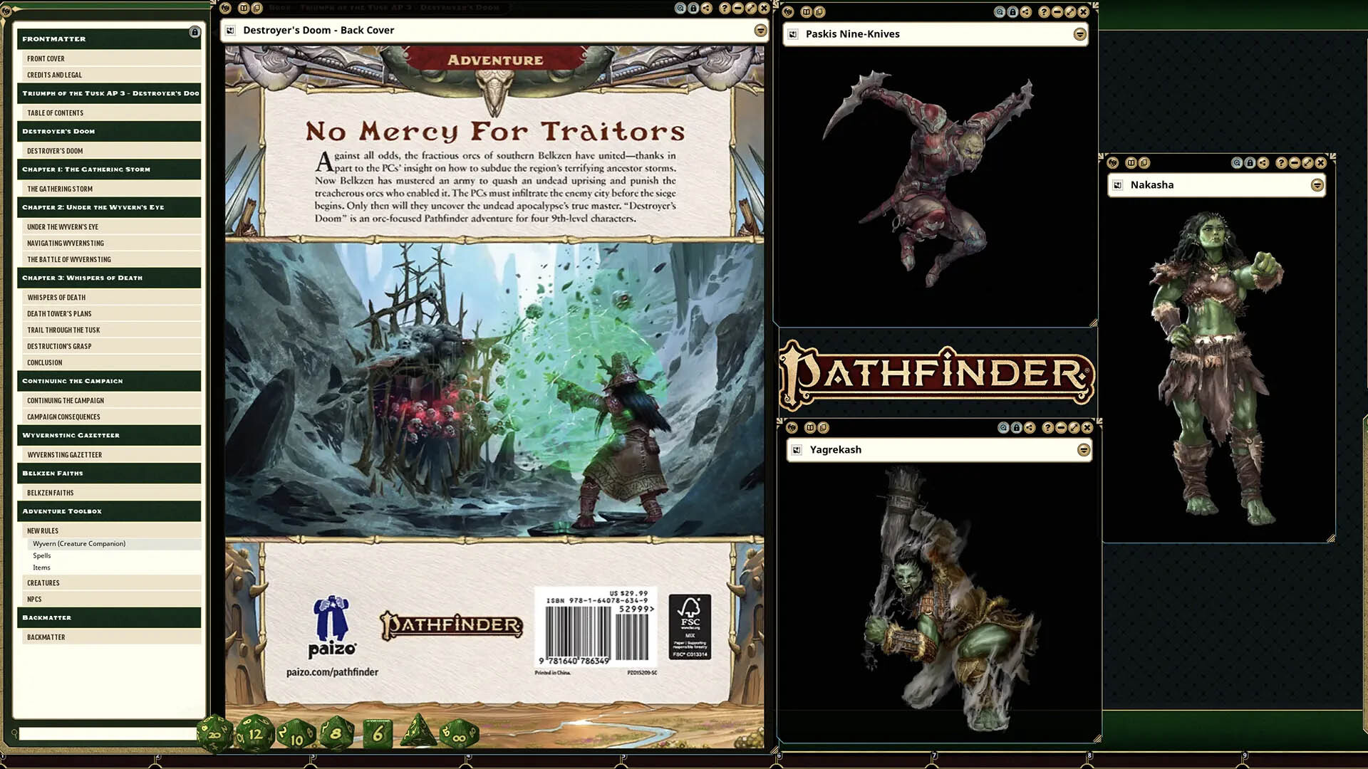 Requires: The free Fantasy Grounds virtual tabletop (VTT) software and the included Pathfinder 2.0 ruleset.