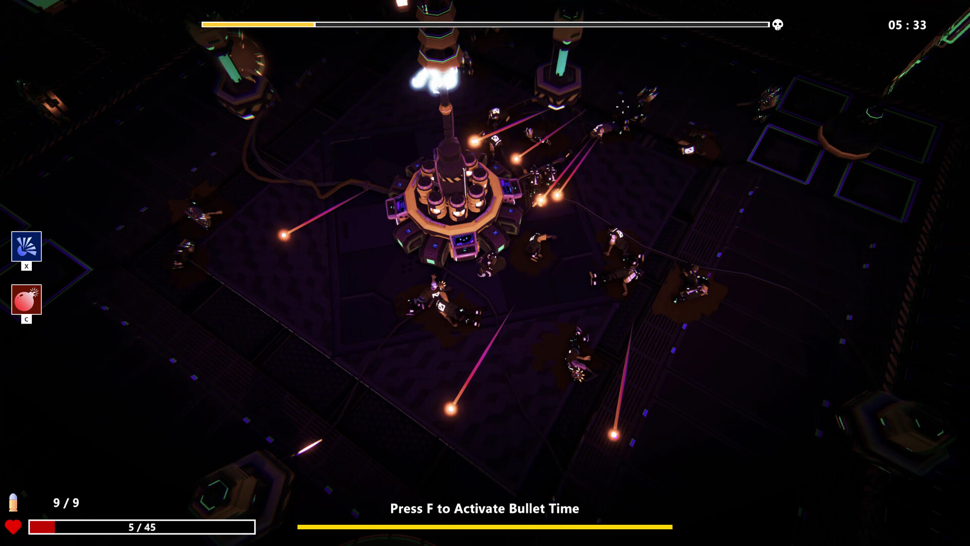 “The current build features the complete core gameplay loop: intense top-down shooting, the functional 'Bullet Time' skill, and several challenging waves of enemies. It is fully playable and representative of the final game's 'feel,' providing a solid foundation for us to build upon during the EA phase.”
