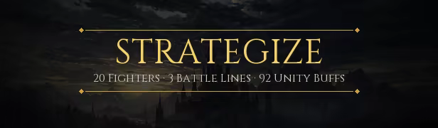 Place 20 fighters across front, mid, and back lines. Stack races and archetypes to unlock 92 Unity Buffs that transform your entire guild. Every position, every pairing, every stat matters.