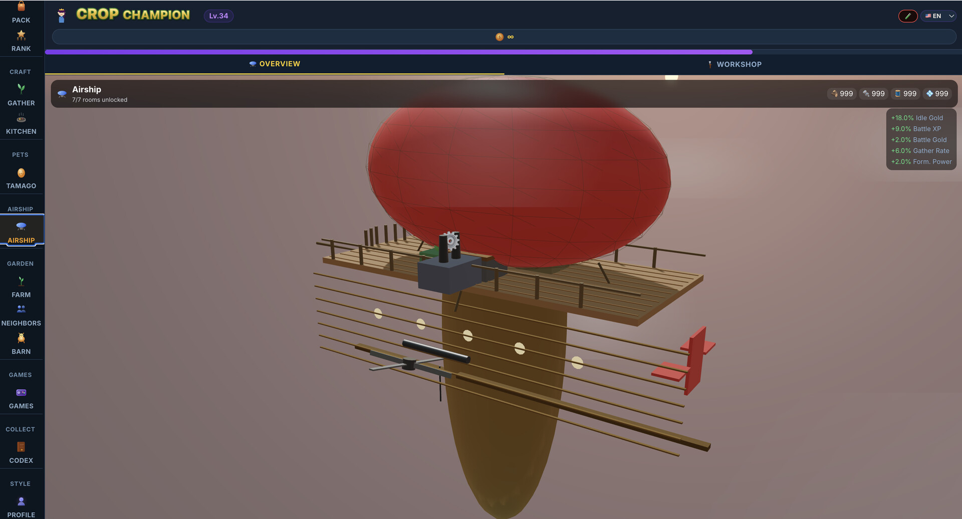 하지만 전투는 재미의 절반일 뿐입니다. 신비한 알에서 펫을 부화시키고 "아, 작고 귀여워"에서 "세상에, 이빨이 났어"로 진화하는 것을 지켜보세요. 비행선을 방 하나씩 건설하세요 — 모든 영웅 팀은 정원이 딸린 하늘을 나는 집을 가질 자격이 있으니까요. 농장을 돌보고, 이웃의 작물을 훔치고 (걔네가 먼저 시작했어요), 닭과 소를 키우며, 잠시 평화로운 농장 시뮬레이션을 하는 척하세요.