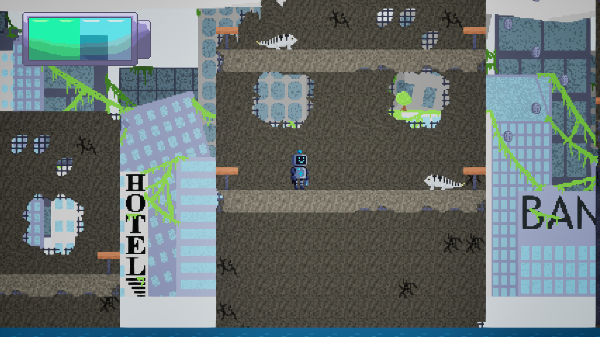 You are ROSA, a Rescue Operation Safety Android, in a world flooded with your one weakness: water. With only your trusty laser and the abilities you find across the world will you be able to find any humans that might remain.