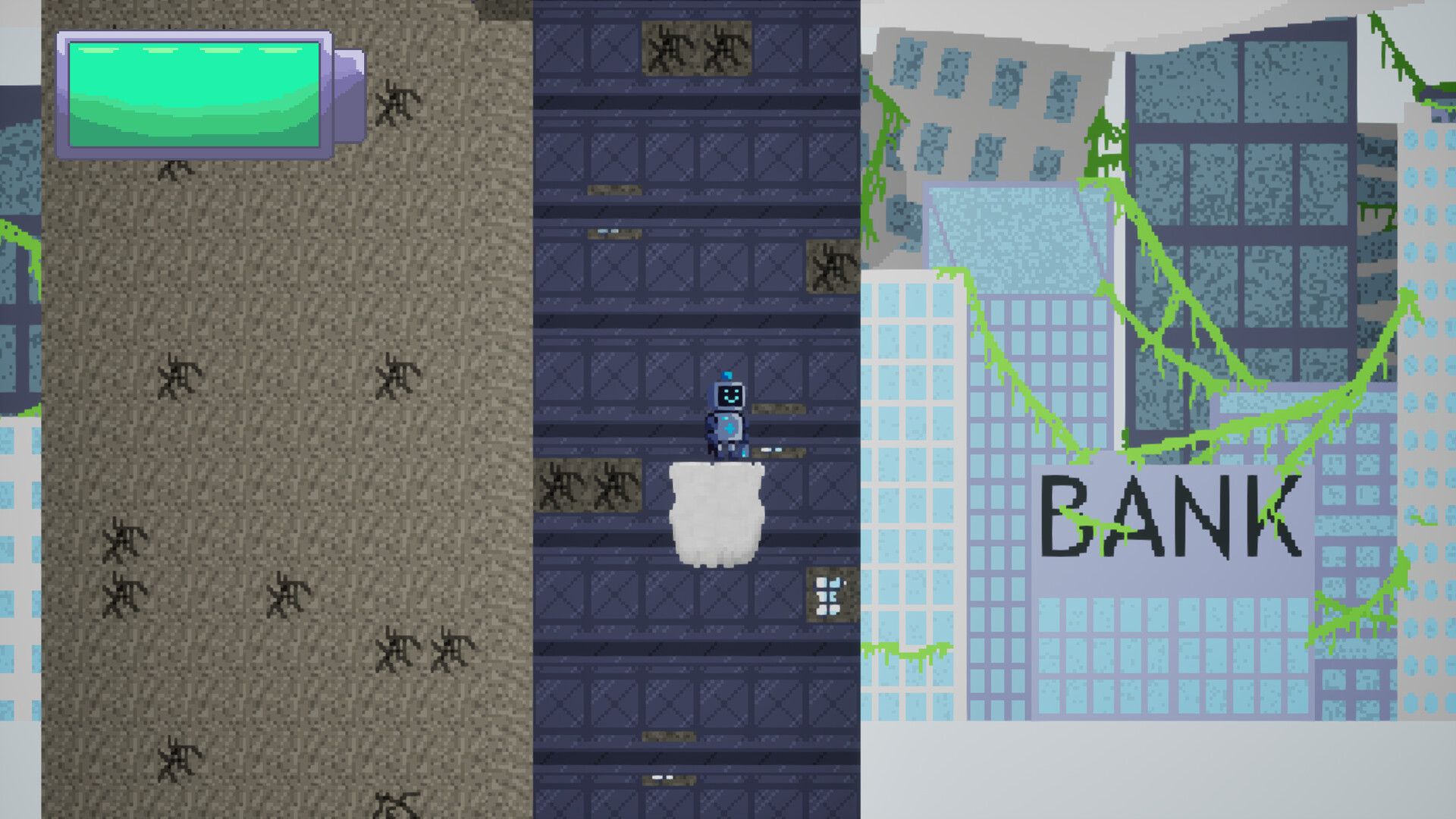 You are ROSA, a Rescue Operation Safety Android, in a world flooded with your one weakness: water. With only your trusty laser and the abilities you find across the world will you be able to find any humans that might remain.