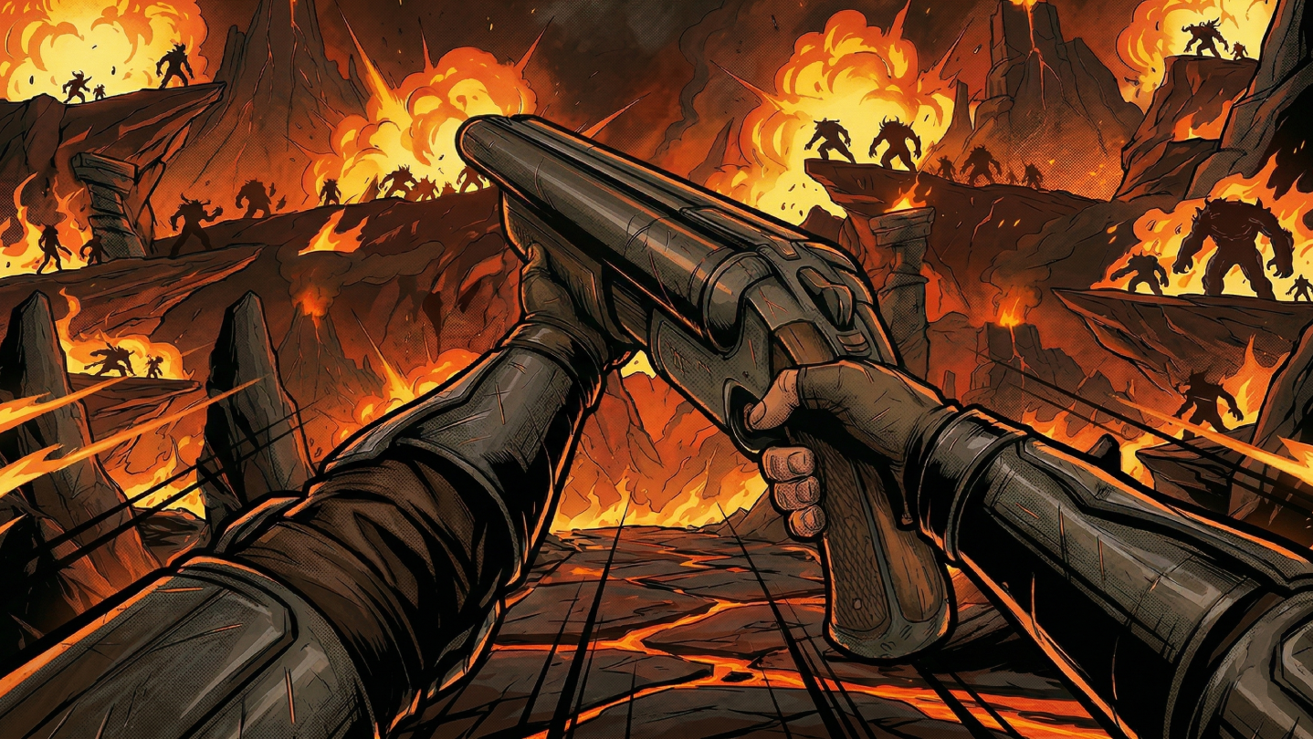 The game contains fantasy violence. Players fight and shoot demonic creatures using various weapons. Defeated enemies may display brief blood-like visual effects. There is no sexual content.
