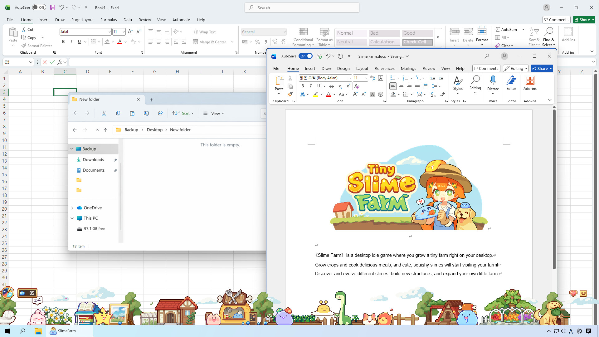 While you work or study, your slimes continue to move, eat, and grow beside you.