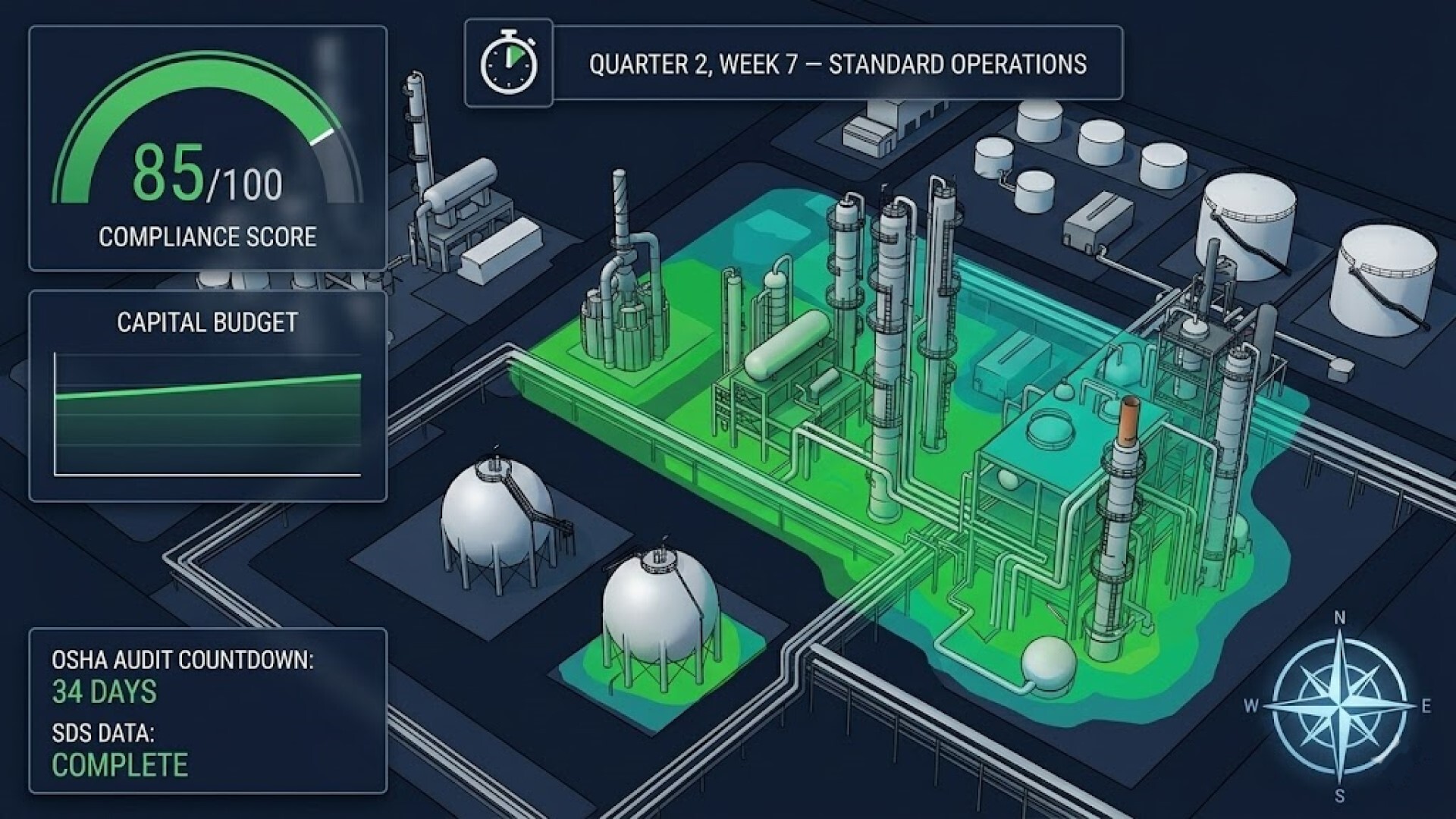 Balance compliance scores, capital budgets, risk metrics, and political pressure as you navigate OSHA audits, whistleblower reports, vapor releases, and the quiet friction of a facility that never stops running. When crisis strikes, time slows and the real test begins.