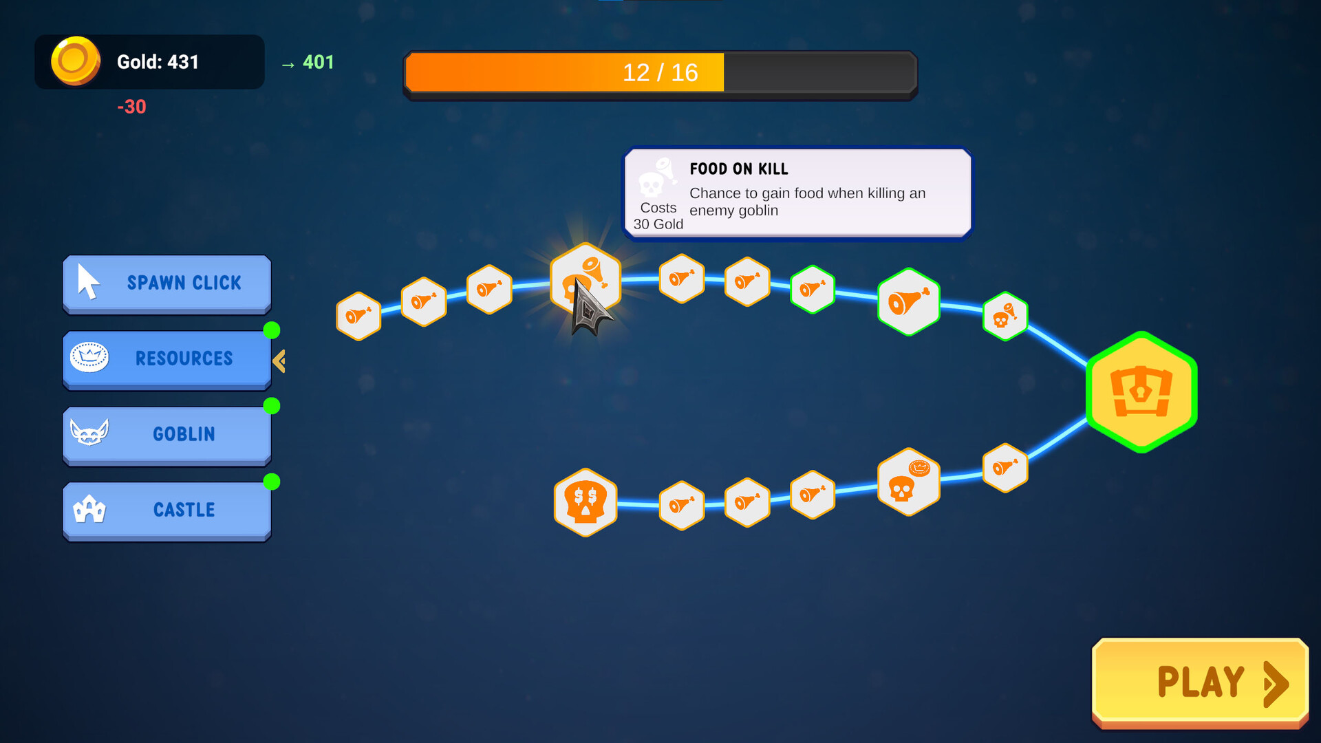 Goblins for Good is an incremental game. Goblins spawn at your cursor. Upgrade to increase the max Goblins spawned, how fast they spawn, and increase their strength. Unlock merges where five Goblins can merge into a Hobgoblin, five Hobgoblins can merge into an Ogre, and so on. Unlock other cursor effects like healing and damage to support your goblin horde. Grow your army in power and watch your exponential upgrade progress be reflected in the RTS simulation.