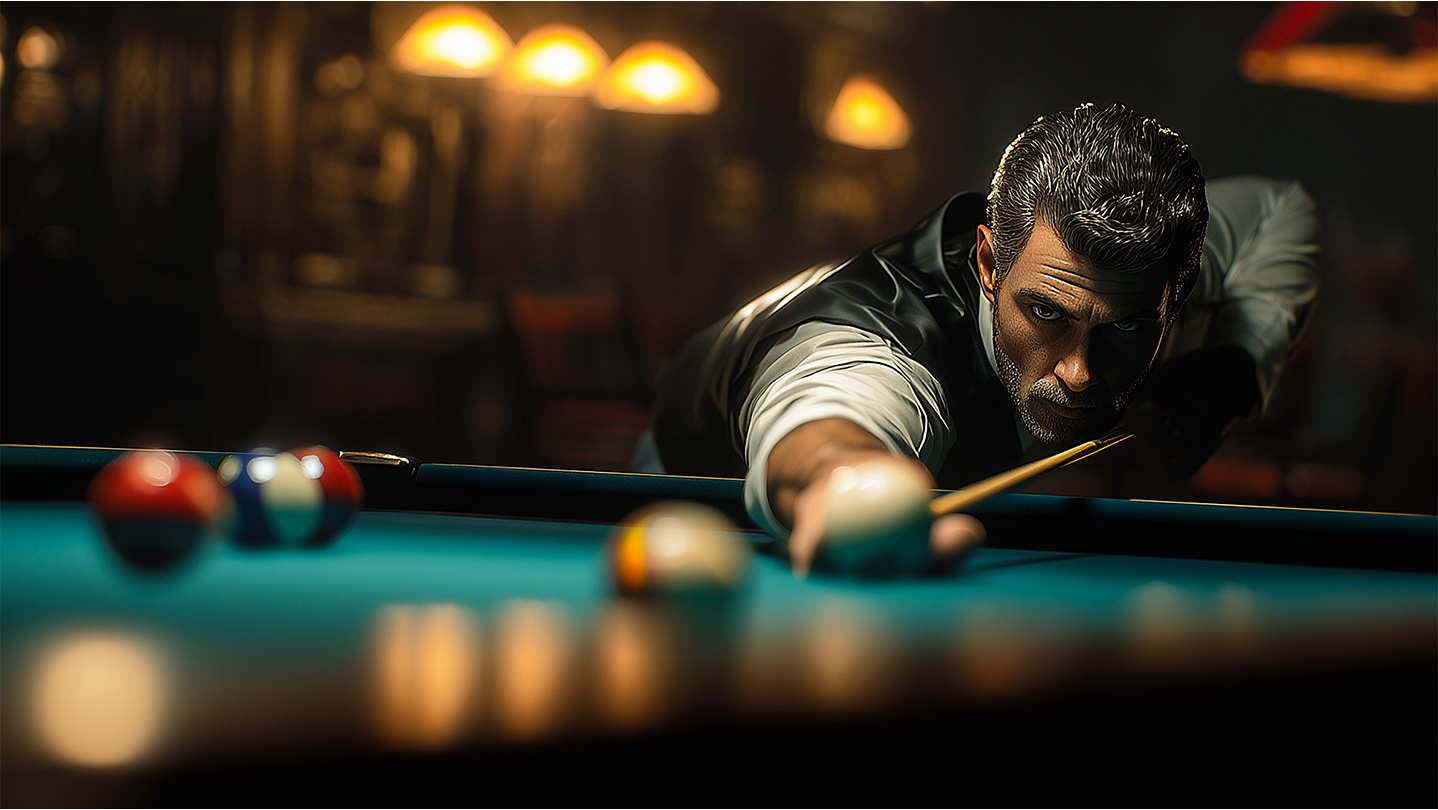 Play inside a lively bar environment where people watch your game, react to your shots, and comment on your wins or mistakes. Dynamic music and atmosphere make every match feel alive.