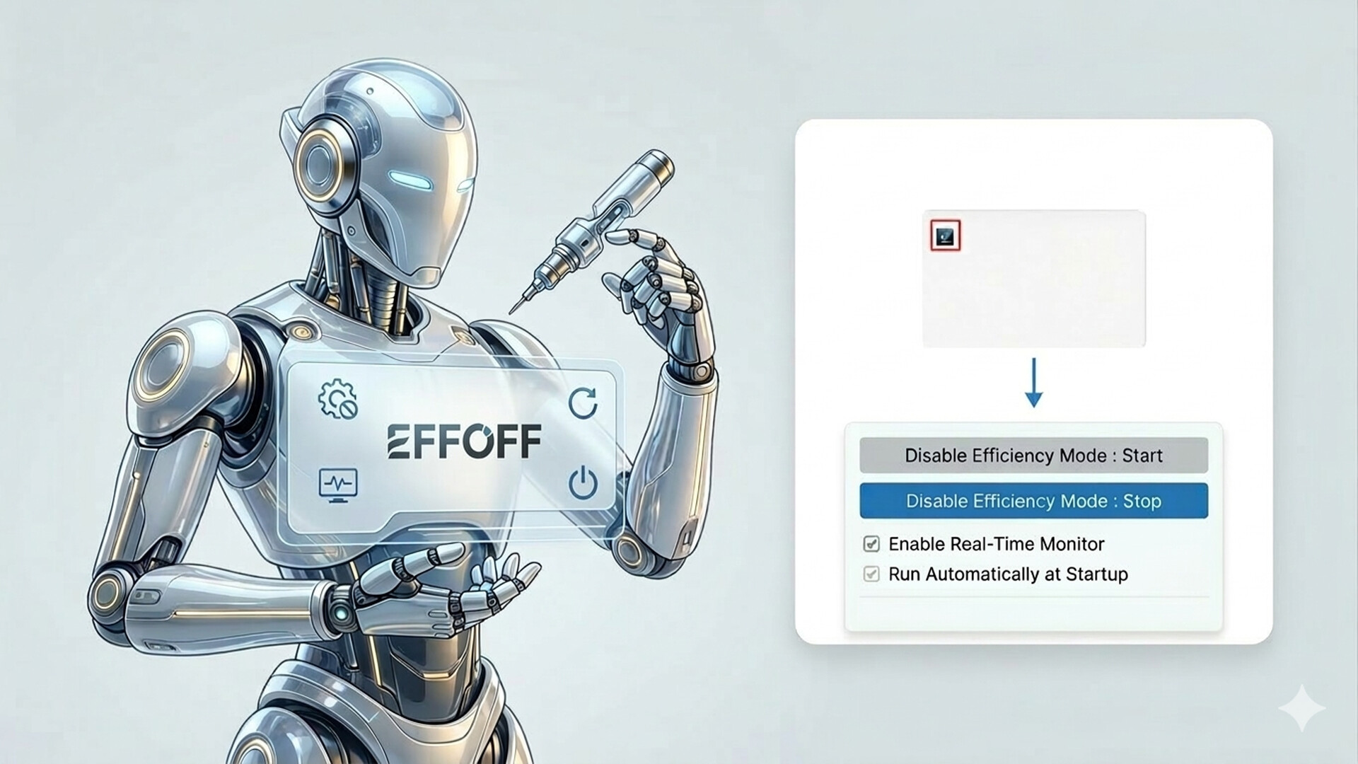 Windows 'Efficiency Mode' throttles performance even on high-end PCs. EffOff detects and resolves these restrictions in real-time, ensuring your hardware runs at 100% potential without compromise.