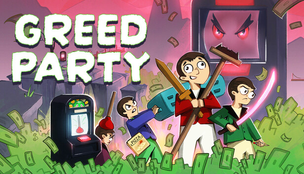 Greed Party is an online co-op party game for 1–4 players built around greed, luck, and chaotic melee combat. Drop into a cursed gambling world, collect falling chips, spend them on slot machines, and take your chances on random weapons before facing the boss.