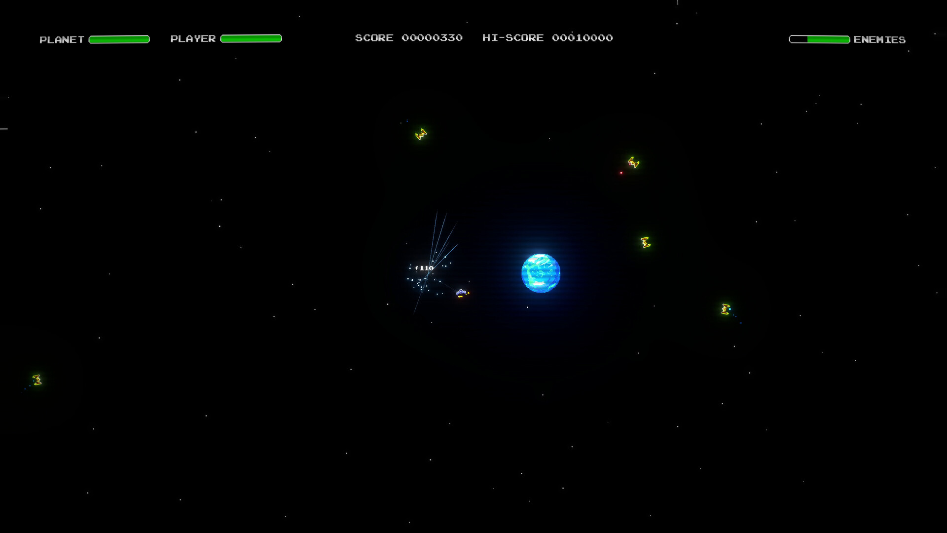 ⚙️ Upgrade & Defend: Boost firepower, speed, and shields with power-ups. Block enemy fire with defensive orbs, hunt foes with devastating lasers and homing missiles, and activate planetary turrets.