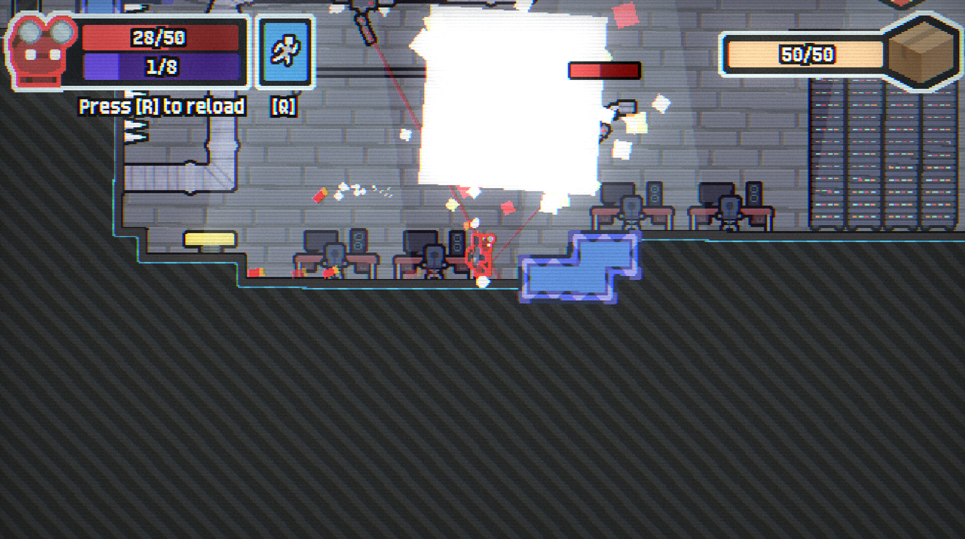 Your revolver is your weapon and your wings. Blast through enemies, bounce off walls, and use your own recoil to sling yourself across the level before anyone knows what hit them. The package isn't just your cargo: it's a tool, a platform, and a projectile. Learn to use everything at your disposal, and the game opens up. Play it slow, and you won't last long.