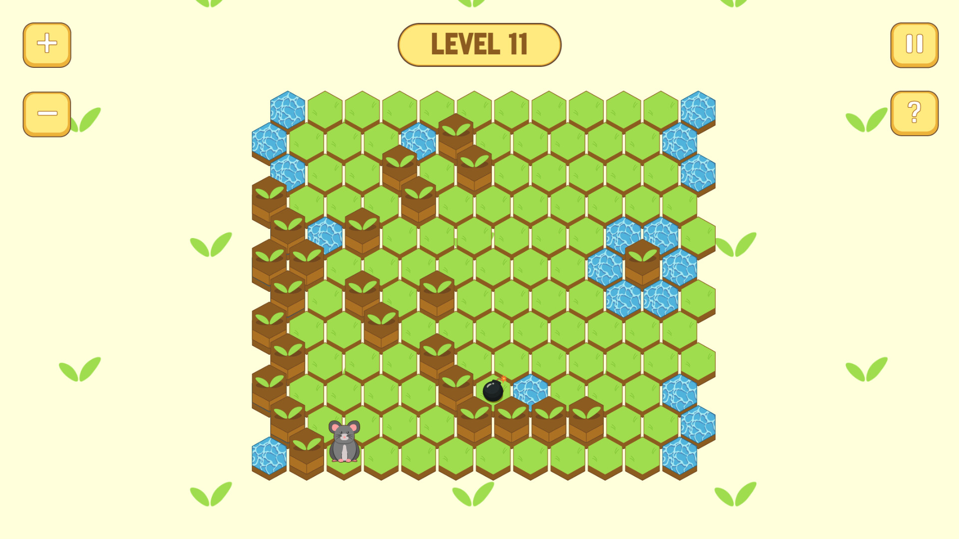 There are also tiles with bombs. If the mouse stays in its radius when it blows up, you win.