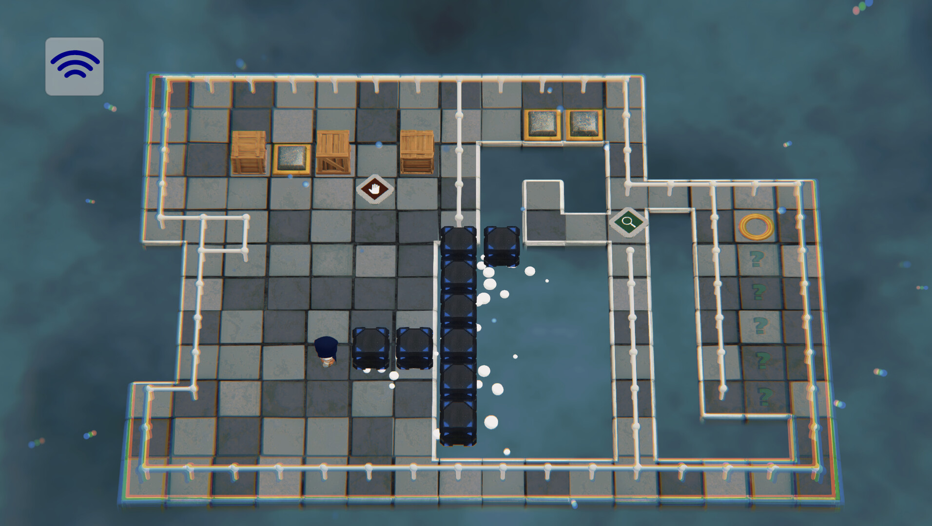 As you progress, puzzles gradually combine mechanics, asking you to think carefully about movement, object placement, and how different systems interact. Rivers can be crossed with floating crates, machines can travel where the player cannot, and hidden hints may reveal paths that were invisible before.