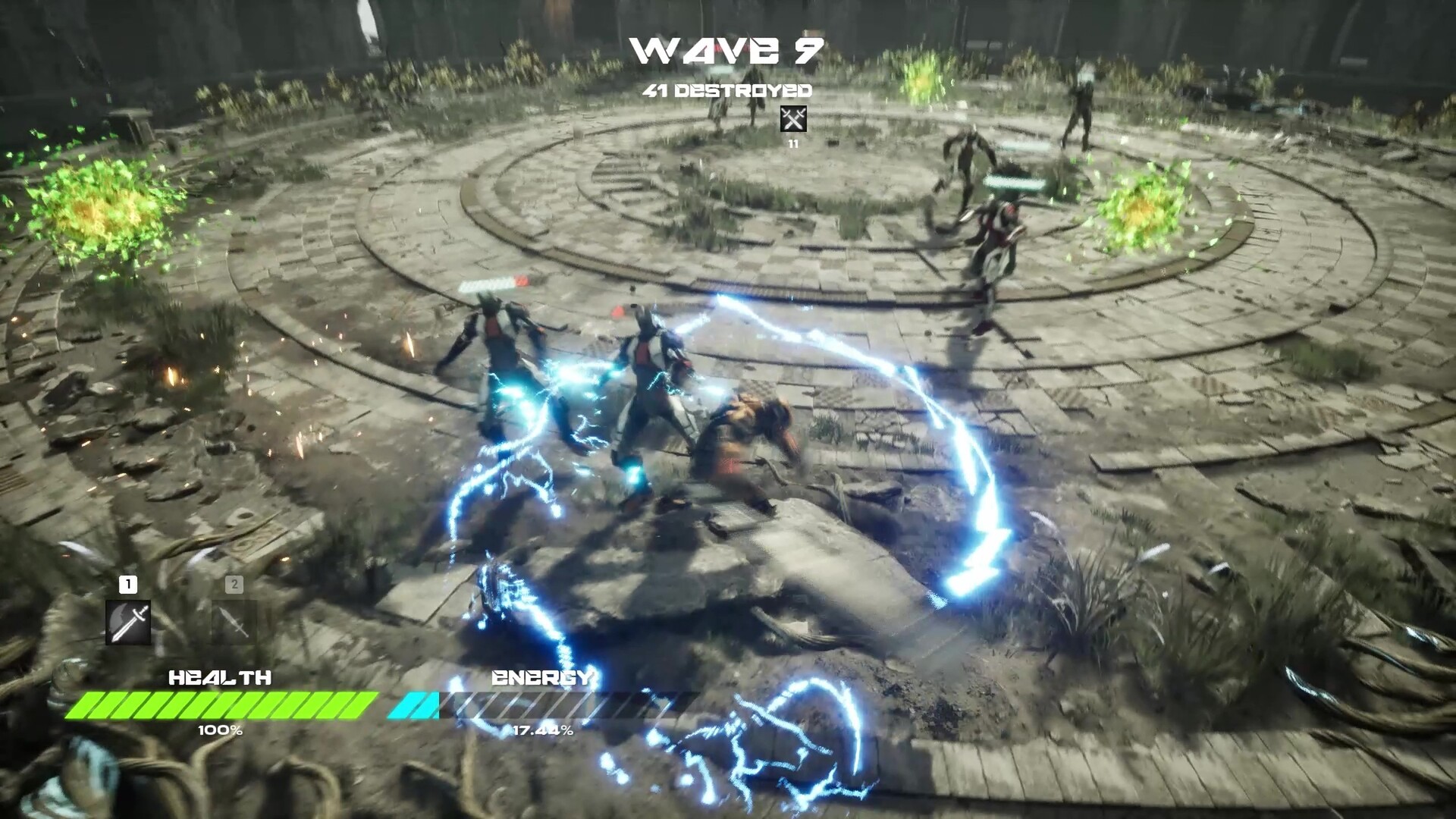 Fight using a dynamic melee combat system. Chain together punches, kicks, aerial attacks, and sword strikes while mastering defensive techniques like dodging, blocking, and perfectly timed parries. Each wave becomes more intense, pushing your combat skills further.