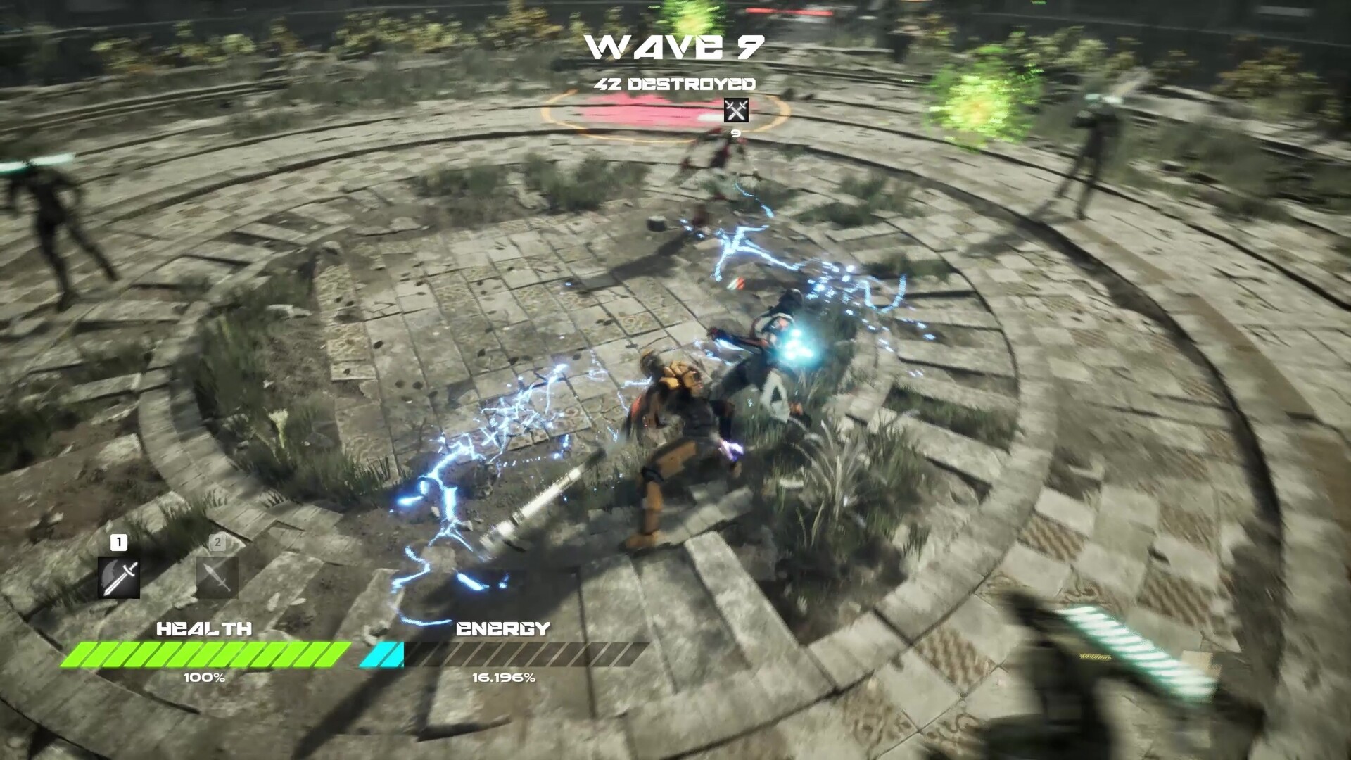 Fight endless waves of robots in a brutal factory combat test. Master a fast-paced melee system with punches, kicks, aerial attacks, sword strikes, dodging and parrying. Push through increasingly difficult waves and record how far you can go.