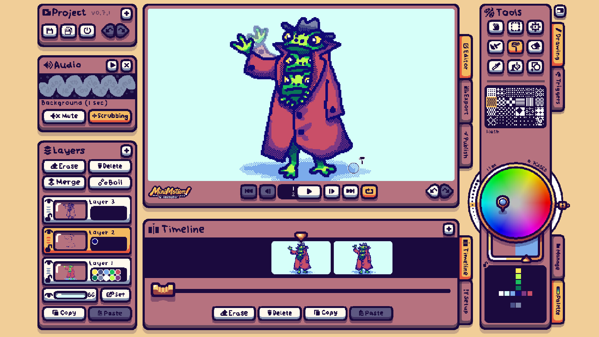 A very simple tool for creating little bitmap animations, and even short interactive experiences. Share your masterpieces to the workshop to get feedback.