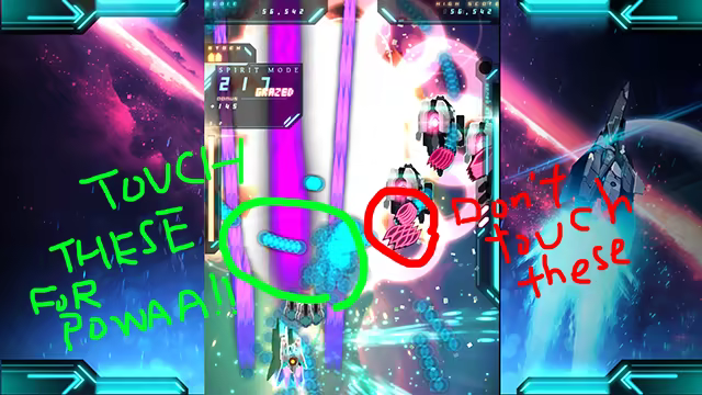 GRAZING Get the core close to bullets to just barely "graze" it will power up the player's craft. Once fully charged it can unleash a powerful rampage that makes you feel like a total boss.