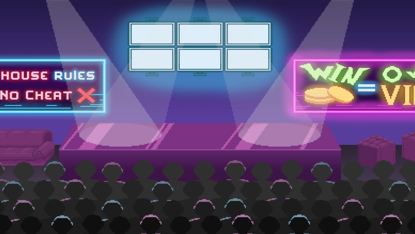 Luck of the Draw is a card battle set in a neon pub. Draw from the deck, play the cards wisely, and try to give your opponent 5 hearts before they give them to you. In this chaotic duel of luck and strategy, every card could change the game.