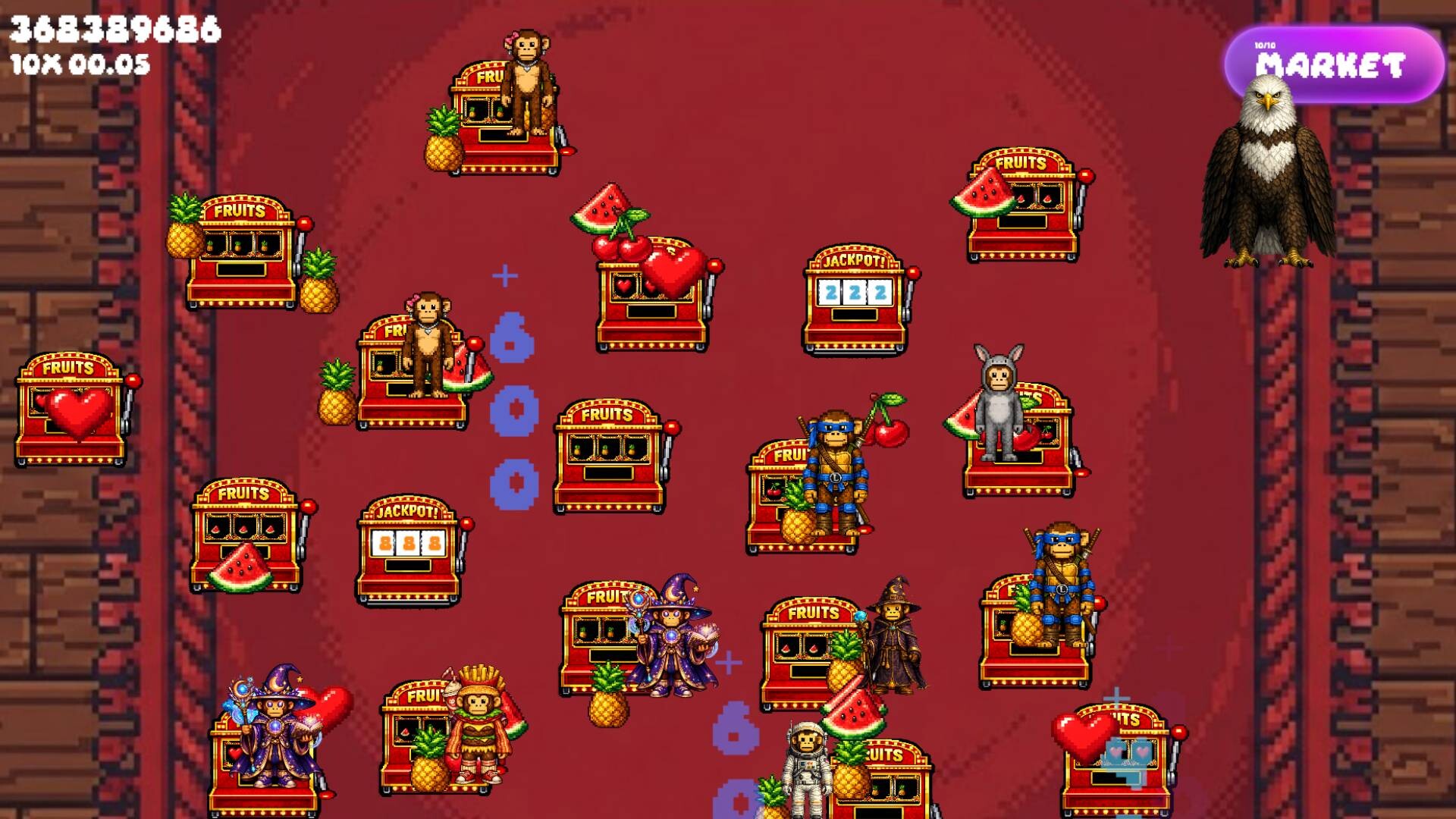 시작은 모든 것이 플레이어의 손에 달려 있습니다. 슬롯머신을 클릭해 돈을 벌고, 그 수익으로 보조 원숭이들을 고용하세요. 원숭이들이 고용되면 플레이어 대신 머신을 돌리기 시작하며, 이를 통해 더 빠르게 수익을 창출할 수 있습니다. 새로운 머신과 일꾼이 늘어날수록 여러분의 작은 사업은 더 크고 효율적인 시스템으로 진화합니다.