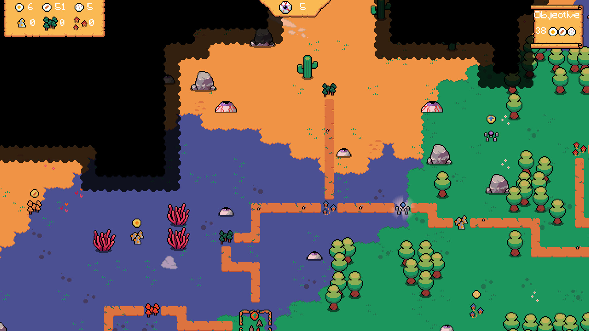But be careful each resource is also required to build paths toward new locations and expand your territory, so make sure you don’t run out of any of them.