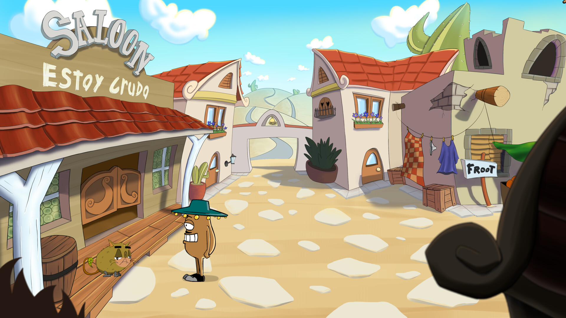 A LucasArts-inspired point-and-click adventure. Help AL Potato and his orange buddy Pancho collect and combine items, solve absurd puzzles, and charm desert weirdos — all in a desperate quest to reach Las Vegas. Hand-drawn art and offbeat humor throughout.