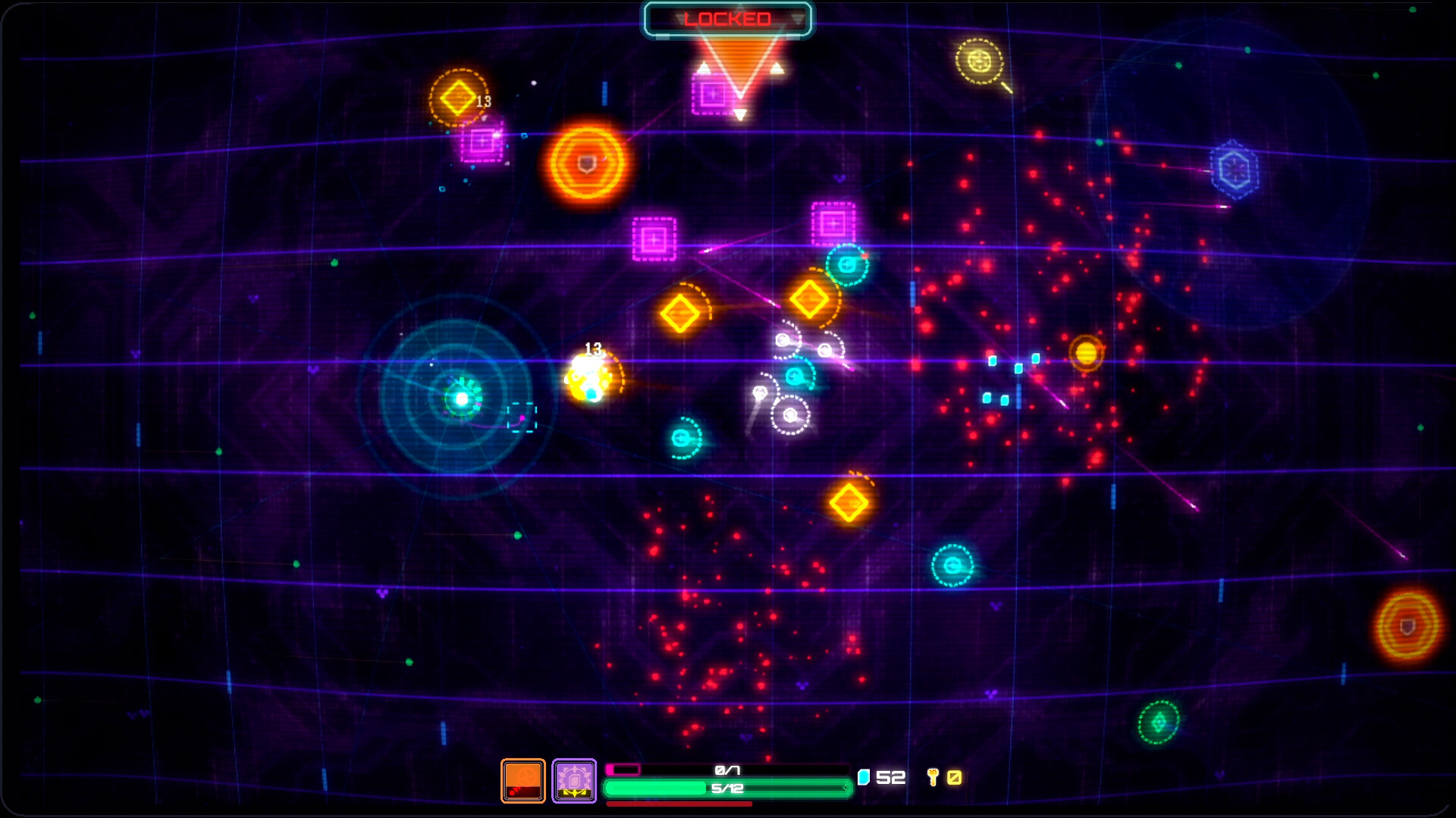 In Null Root, you control the battlefield using both your daemon core and your cursor. Combine a vast arsenal of abilities including shattering explosions, piercing lasers, proximity mines, and tactical movement skills. Mix offensive and defensive options to create game-breaking synergies, adapting your build to survive.